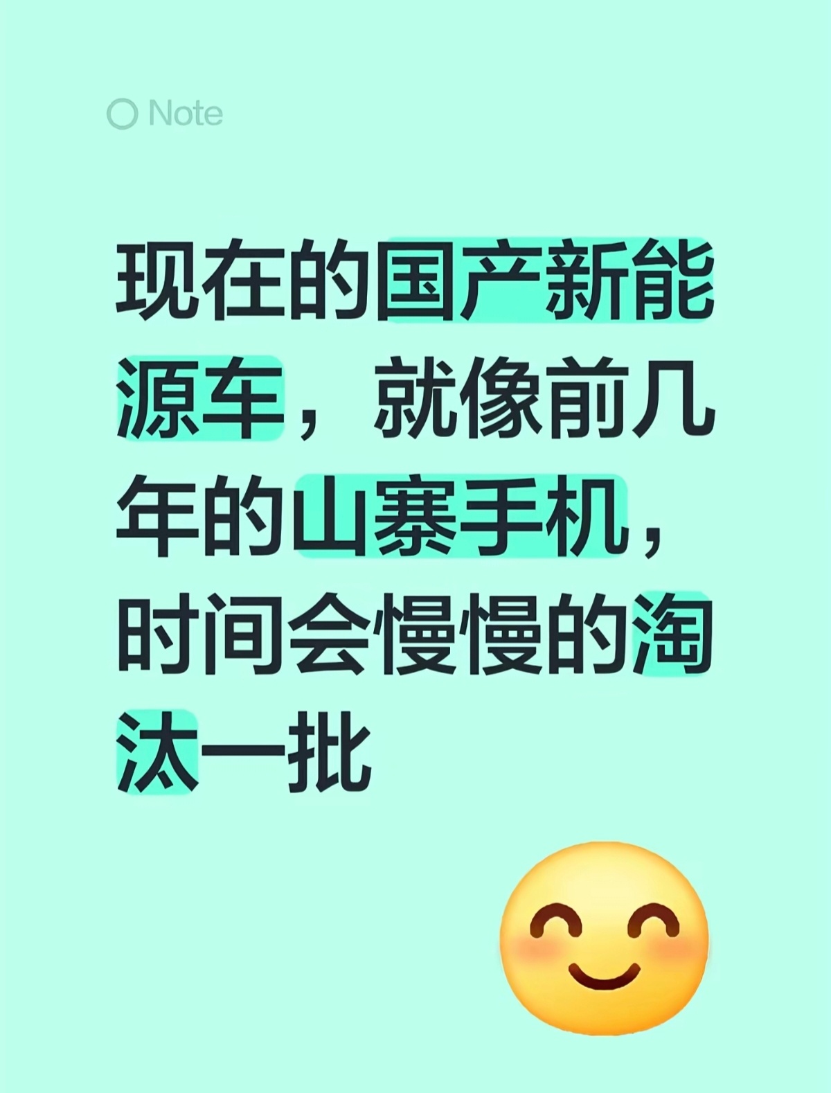 人与人的认知不尽相同,有人认为“油车是坚实耐用的诺基亚,新能源是有杀马特大喇叭的山寨手机”,有人认为“油车是绿皮火车,新能源则是高铁动车”山寨手机靠的是仿造外观、拼凑低价零件,没有技术积累,更没有长期的用户服务。但如今的国产新能源车企,是在电池、电机、智驾系统这些核心技术上投入研发,从底层架构到用户体验都在自主迭代时间确实会淘汰一批玩家,但被淘汰的只会是那些没技术、没口碑的跟风者,而真正自研技术、懂用户需求的车企,反而会在市场洗牌中走得更远与其用旧标签定义新事物,不如看看这些年国产新能源车在安全、续航、智能化上的进步,它们早就不是靠低价博眼球的“山寨”了,而是实实在在的产业升级产物