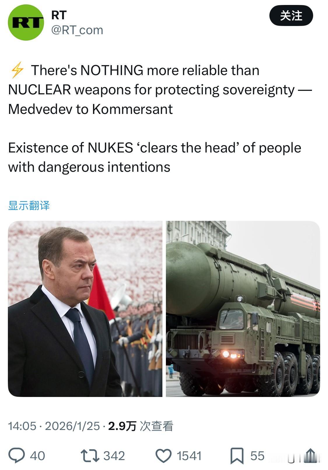 近日,俄罗斯联邦安全会议副主席德米特里·梅德韦杰夫在接受《生意人报》(Kommersant)采访时强调,核武器是捍卫国家主权最可靠的保障。 以下是其核心观点摘要: 绝对威慑: 他认为核遏制力量是防止潜在敌人采取冒险行动、侵犯国家领土完整和主权的最有效手段。 心理清醒剂: 梅德韦杰夫指出,核武器的存在能够让那些对俄罗斯怀有“危险意图”的人保持头脑清醒,意识到任何直接的军事冲突都可能导致毁灭性的后果。 战略立场: 这一表态符合他近期一贯的强硬立场,即通过强化核威慑信号来应对西方在乌克兰问题上的持续介入及对俄施压。
