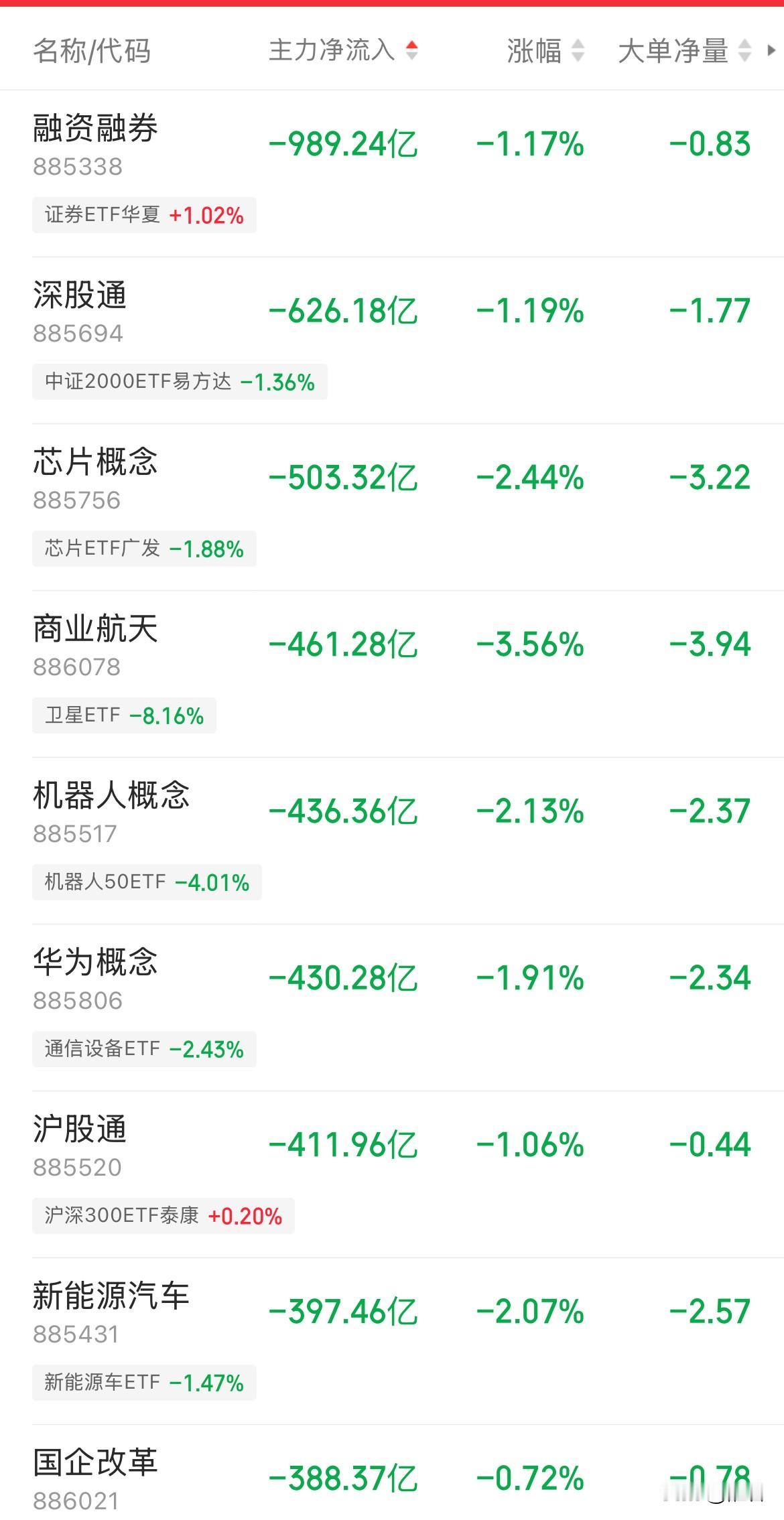 难怪今天热门题材全线大跌,原因在这里呀! 证券日报发文“拒绝题材炒作”并且点名机器人板块的锋龙股份,所以今日可见所有前期热门板块全线大跌,主力资金净流出。尤其是AI、芯片、商业航天、机器人每个概念都是数百亿的资金流出,如此巨量的资金流出在A股历史上也是极为罕见的。 估计是觉得这篇报道对市场影响太大,随后证券日报又发文称“监管部门的一系列举措并非打压热门赛道”,可是好像并没有用。 结果就是大家看到的样子了,今日放量3200亿最终成交了3.2万亿,市场超过3700家下跌,全部都还热门赛道上的。而且从技术之来看,这些大多数经过今天的大跌俊跌破各条支撑线,形成了向下的趋势行情。 正所谓“向下容易,向上难”,情绪和趋势一旦建立是很难扭转的。