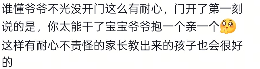 对孩子有耐心,是给予他们安全感和试错空间的核心,能让孩子在包容中建立自信、愿意表达,也能让亲子沟通更顺畅,避免因急躁引发的对抗与隔阂。耐心的引导更能教会孩子情绪管理,潜移默化中培养他们沉稳、平和的性格,这是孩子成长路上最珍贵的滋养。一岁宝宝把爷爷锁阳台了