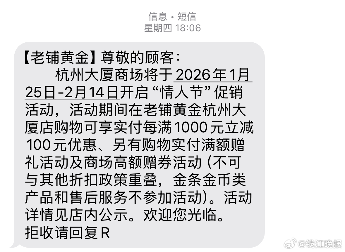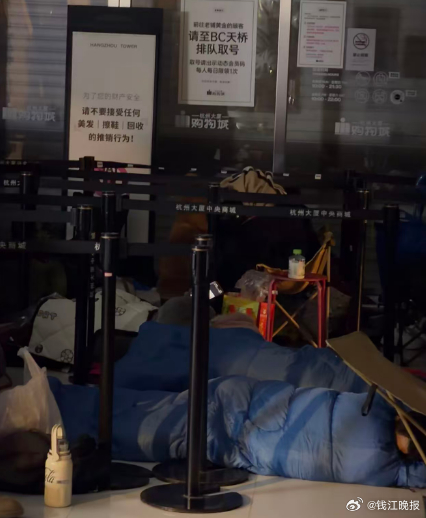 【#买金人凌晨在商场天桥打地铺# 】今天,杭州大厦B座的老铺黄金专柜,排队买 #黄金# 的情景再次上演。#黄金不到一个月涨了700美元#不出所料,老铺黄金又在搞活动了。有消费者收到短信,在1月25日~2月14日的活动期间,在老铺黄金杭州大厦店购物可享实付每满1000元立减100元优惠、另有购物实付满额赠礼活动及商场高额赠券活动。有网友算了一笔账,这次促销活动各类优惠叠加之后,相当于88折购买老铺黄金。在社交媒体上,有人晒出视频和图片,1月25日凌晨,商场天桥上不少人打起了地铺,为了等一早9点放号。网友感叹:太疯狂。一位网友表示,昨天早上五点多起床排队取号,取到了90号,到下午四点多才买好。也有不少网友表示,取号队伍中有些是“代排”,一个号有的叫价300元,也有叫价600元。“每天放号至少两三百个,具体要看排队情况。昨天店员就忙到凌晨才下班,因为只要是当天取的号,我们一定会服务完。”一位工作人员这样说。(潮新闻 记者 马焱)