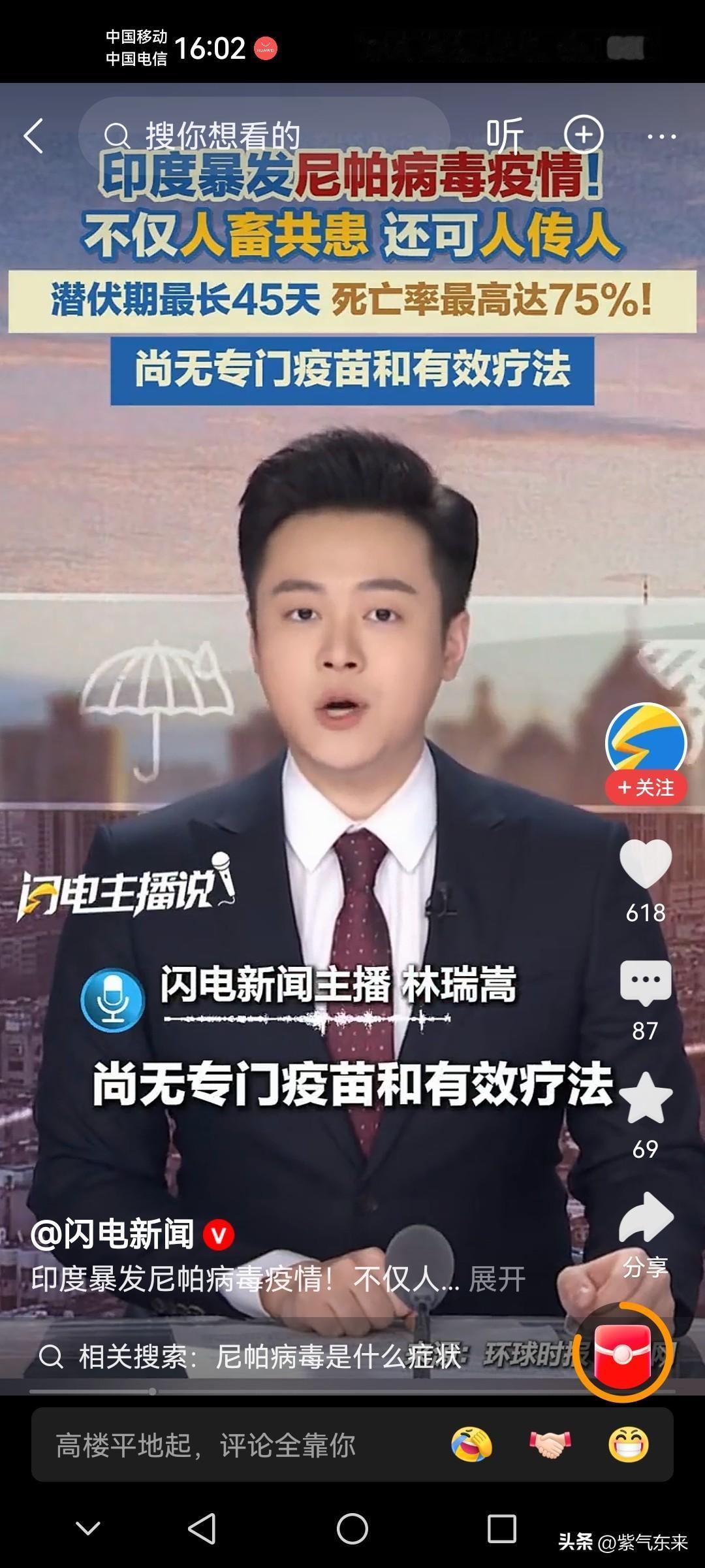 印度不鸣则已,一鸣惊人! 直接出了“王炸”!把泰国和尼泊尔以及周边国家“炸懵”了。 印度的西孟加拉邦爆发尼帕病毒疫情,直接让泰国和尼泊尔惶恐不已,目前泰国和尼泊尔这两个国家加强边境口岸的监测,尤其是印度的航班,以防止疫情传入本国! 关键是这种病毒致死率太高了达到40%-75%,没有有效的应对疗法,也没有专门的疫苗! 尼帕病毒传染性特别强! 一旦人被传染,致死率特别高! 不过印度本地人倒是没有太在意!印度疫情