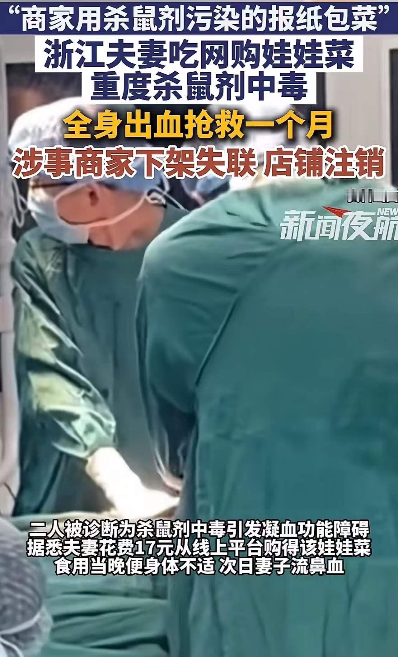 “太吓人了!吃棵娃娃菜,夫妻双双进ICU!”浙江台州,夫妇网购蔬菜竟检出高浓度杀鼠剂,妻子昏迷月余!全网炸锅:食品安全如何保证! 2026年初,浙江台州一对普通夫妻怎么也没想到,一顿家常便饭,竟差点要了他们的命。 台州的这起事件,犹如一记重锤敲击着每一个人的心。原本以为的平凡生活,却因为一颗看似无害的蔬菜,瞬间变得悬疑而危险。事情的起因令人震惊:这对夫妻通过网购购买的娃娃菜,竟然检出了高浓度的杀鼠剂!而更令人心碎的是,妻子因为摄入了这些毒素,已经昏迷超过一个月,生命垂危。 这件事引发了全网的热烈关注,但更多的是深刻的反思:我们的食品安全到底在哪里?我们每天吃的蔬菜、瓜果,背后隐藏的又是什么?难道真的是“天上掉馅饼”的便捷,换来了如此令人心碎的代价?这不禁让人想起那些在市场、在超市、在网络上购买的食品,是否都经过了严格的把关?又有多少隐藏的隐患潜伏在我们的餐桌上? 在这起事件中,最令人愤怒的,不仅仅是个别商家的违法行为,更是整个监管体系的漏洞。网购平台的监管、农药残留检测、食品追溯体系的完善,似乎都还存在着巨大的缺口。这不仅仅关乎一对夫妻的生命,更关乎千千万万普通家庭的安全感。我们每天在网上购买的蔬菜,是否也曾被“藏匿”了不该出现的“毒素”?每一份安全的背后,是谁的责任?消费者的信任,是否能再次得到保障? 这件事让人不禁反思:我们是不是太过依赖“方便”二字,忽略了食品背后那隐藏的风险?我们在追求快捷、廉价的同时,是不是也在将自己的健康“出卖”?更严重的是,许多消费者对于食品安全的知识了解有限,面对琳琅满目的商品,只能盲目选择,却不知道其中潜藏的危机。 或许,我们每个人都曾在超市买过“看似普通”的蔬菜,吃过“放心无毒”的水果,但事实真如表面那么简单吗?这起事件像一面镜子,映照出我们社会在食品安全监管上的不足,也提醒我们每一个人要有更敏锐的“食品安全意识”。同时,也呼吁相关部门必须加强监管,加大惩治力度,让那些为了私利而放任毒素流入市场的黑心商贩无处遁形。 食品安全,不应只是一句空洞的口号,而是一场全民的责任。只有每个人都站出来,监督、举报、呼吁,才能真正守住我们餐桌上的每一道绿色。让我们从这起悲剧中汲取教训,不再让无辜的生命因为一颗娃娃菜而逝去。未来,让我们共同努力,为自己和家人的健康撑起一片安全的天。蔬菜水果中毒 食物投毒 吃木耳中毒 老鼠药中毒 毒青菜 菊酯中毒 芹菜汁中毒