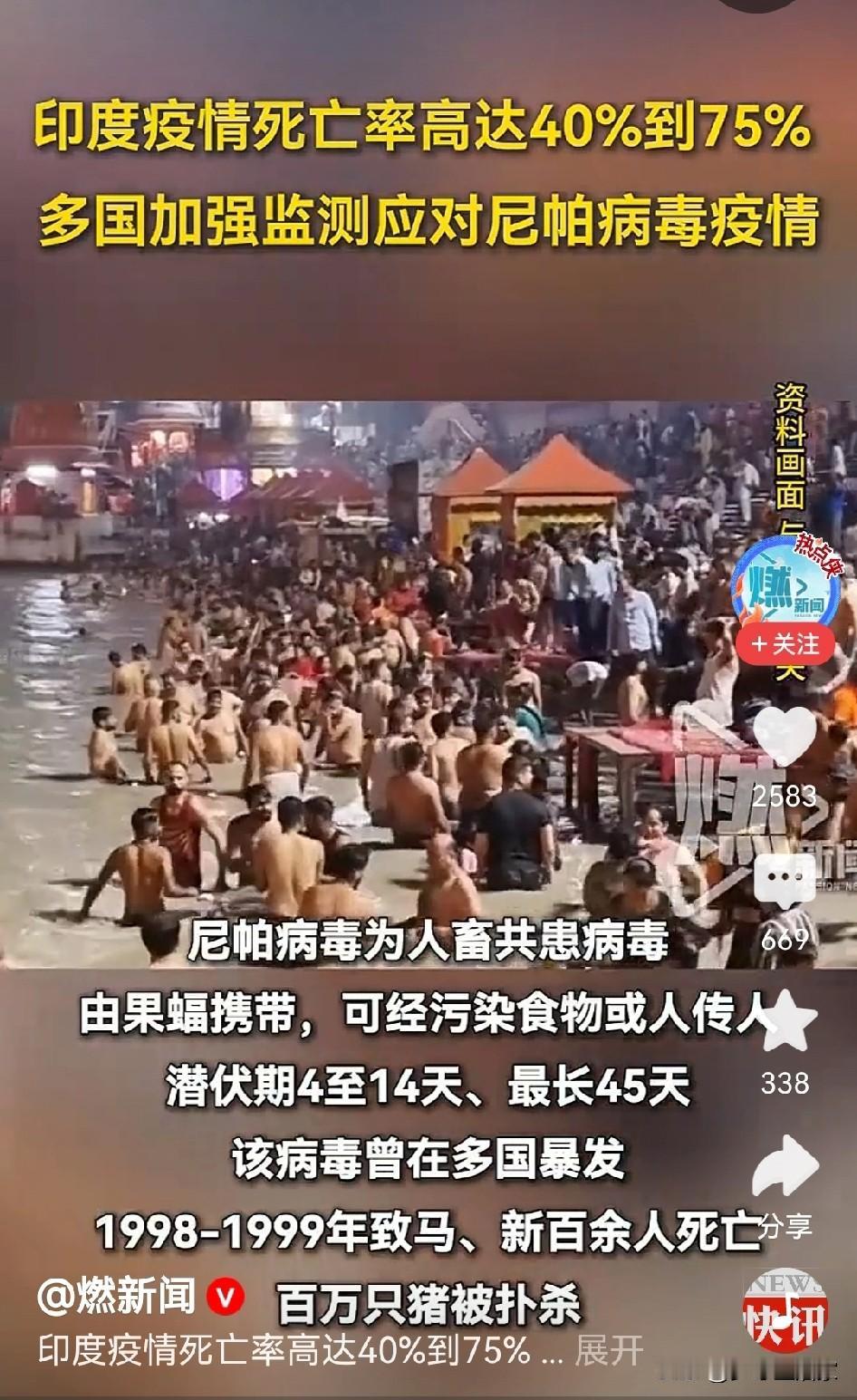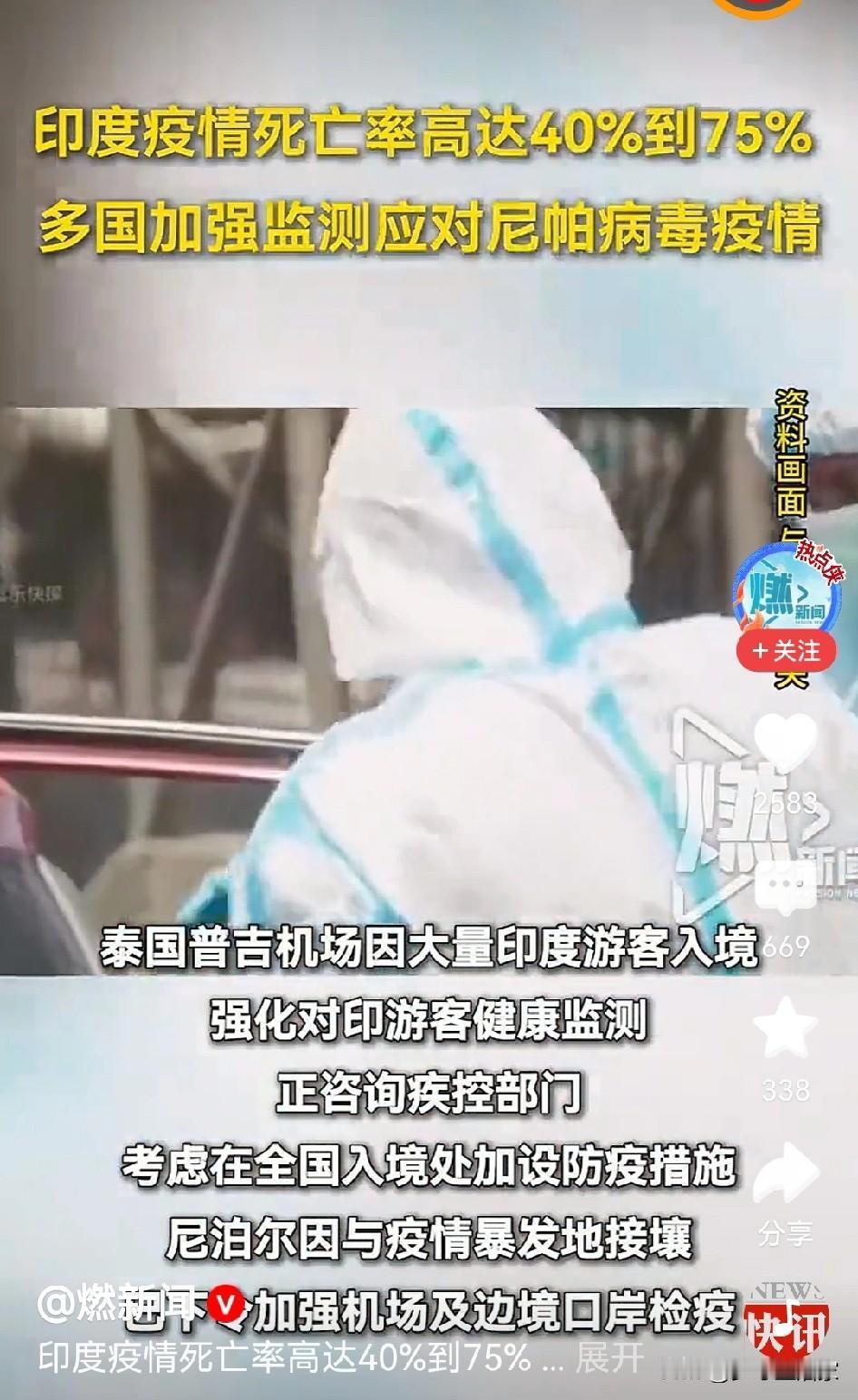 死亡率最高75% 经济差好歹还在硬撑着,如果疫情来袭可能就要停摆,新冠已经给了我们好些防控的经验。 面对病毒🦠的传播,首先是阻断传染源,海关和入境人员管控又是重头戏。 希望高度重视印度人员入境,该隔离隔离,该劝返劝返。 因为春节大迁徙马上开始了。