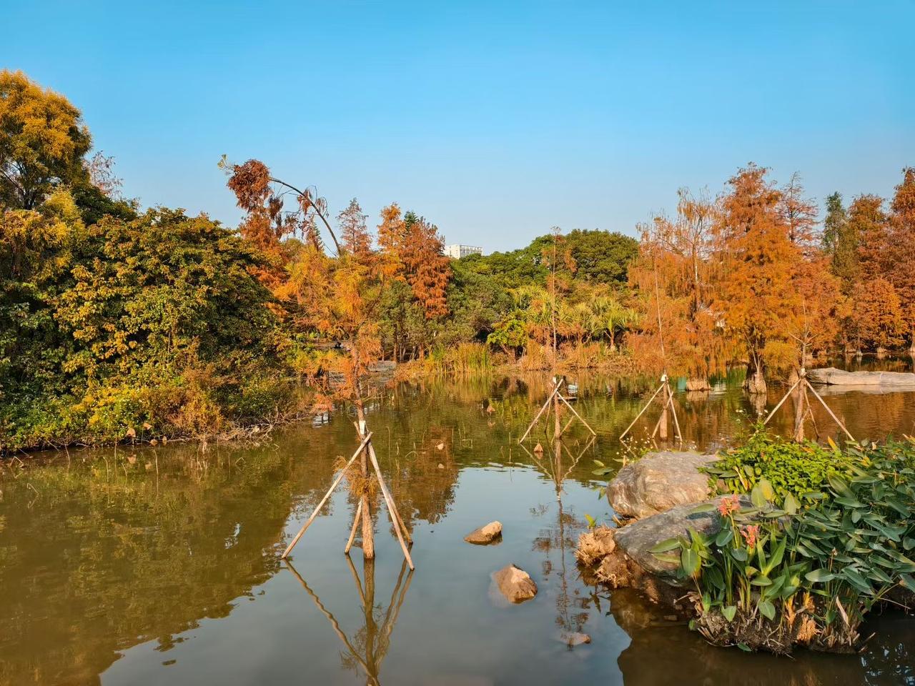 广州的冬日从不会冷清,暖阳轻洒,湖畔的落羽杉尽数染红,层层叠叠的红棕与金黄交织,在微风里轻轻摇曳。阳光温柔得恰到好处,不燥不寒,落在肩头满是暖意,抬眼便是满目温柔。漫步林间,光影透过枝叶斑驳洒落,脚下是松软的落叶,耳边是轻扬的风声,这份独属于广州冬日的浪漫,藏着最治愈的温柔,把平凡的日子都烘得暖洋洋。 广州身边事 努力重要,还是选择重要