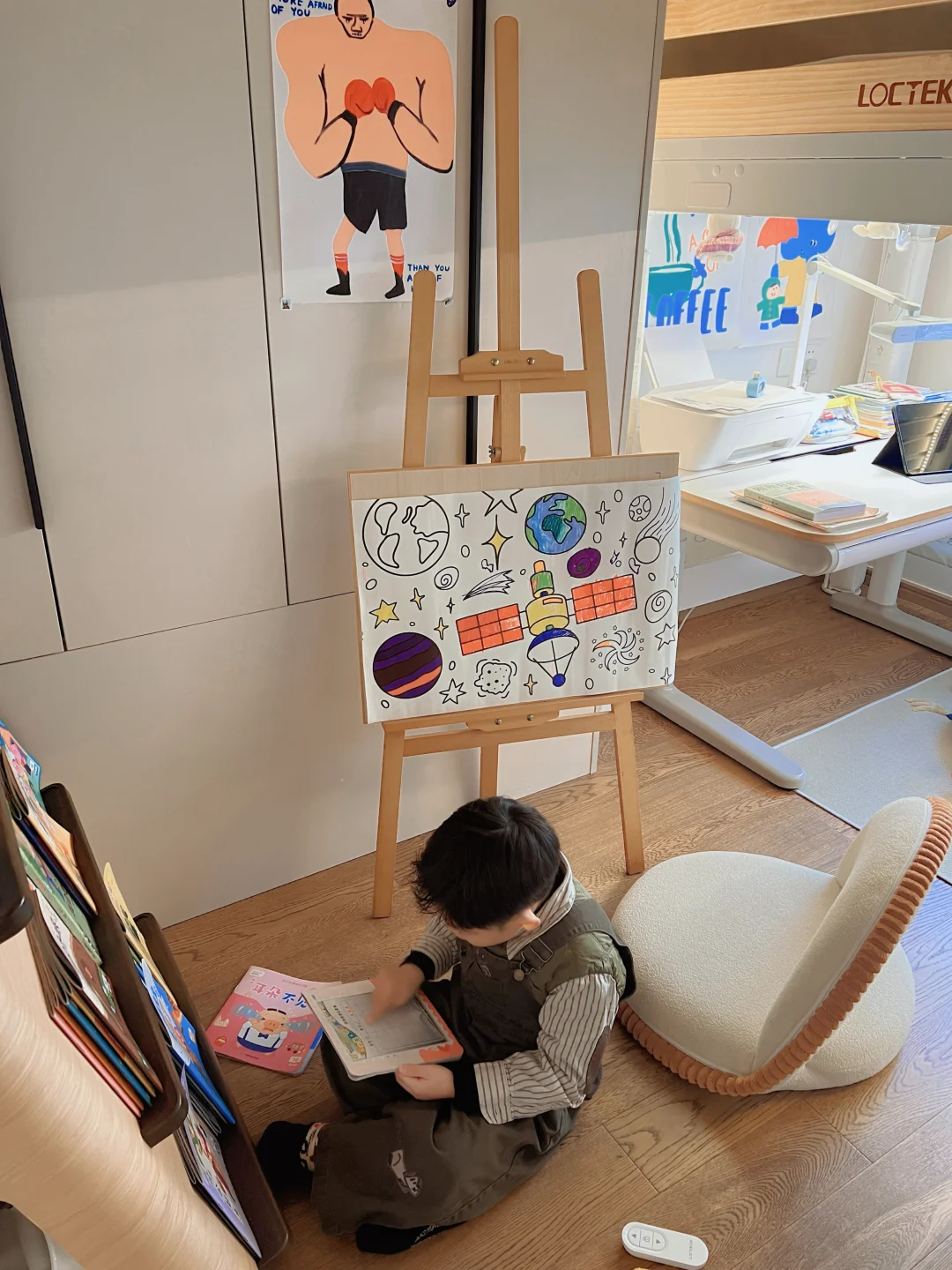 最近这个小朋友迷上了贴画, 吃过早饭就开始了他的作品,哈哈哈 自己会玩、会学 一天都闲不下来 自洽的很……[气球R] 这个家入住3年以来,虽然小 但也确实住的舒心 一家三口这样就挺好!