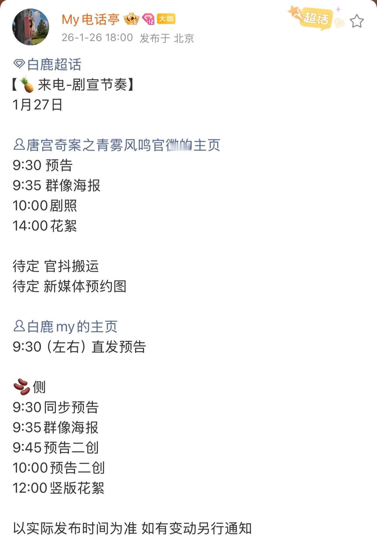 新剧都有动作了,明天有生命树的发布会,还有唐宫奇案的预告