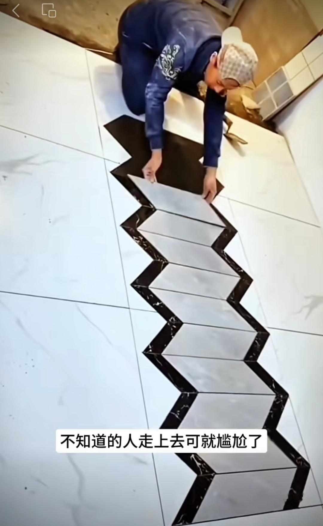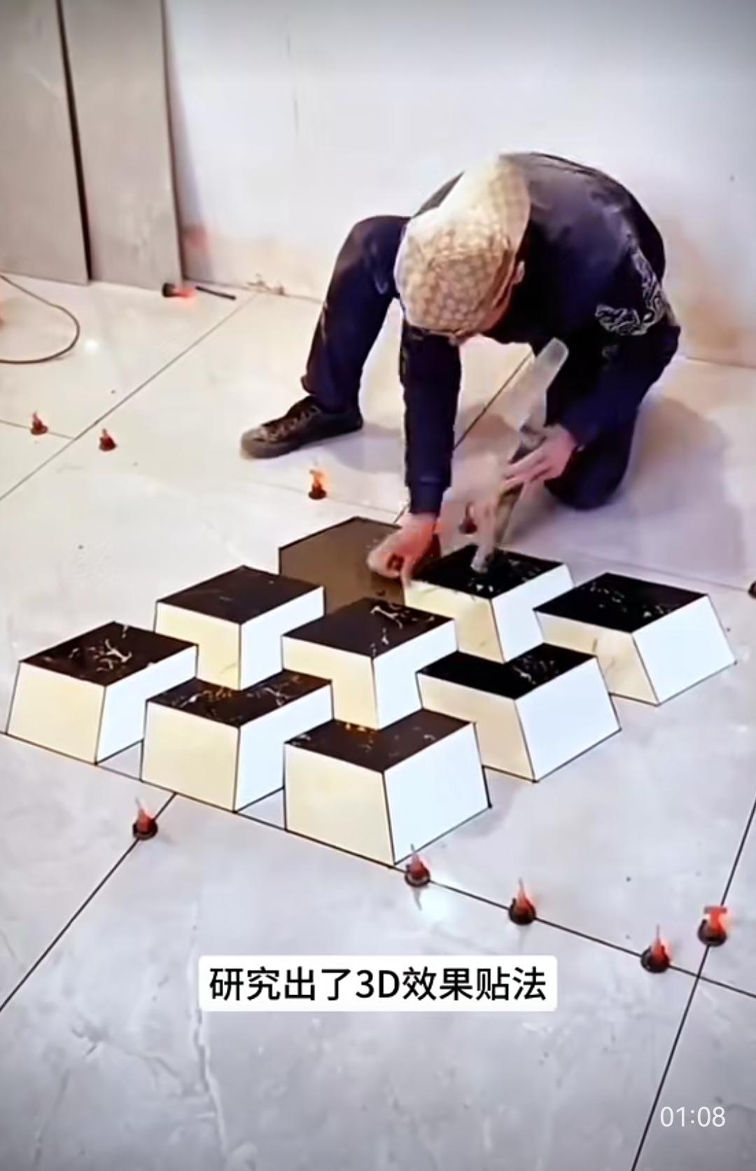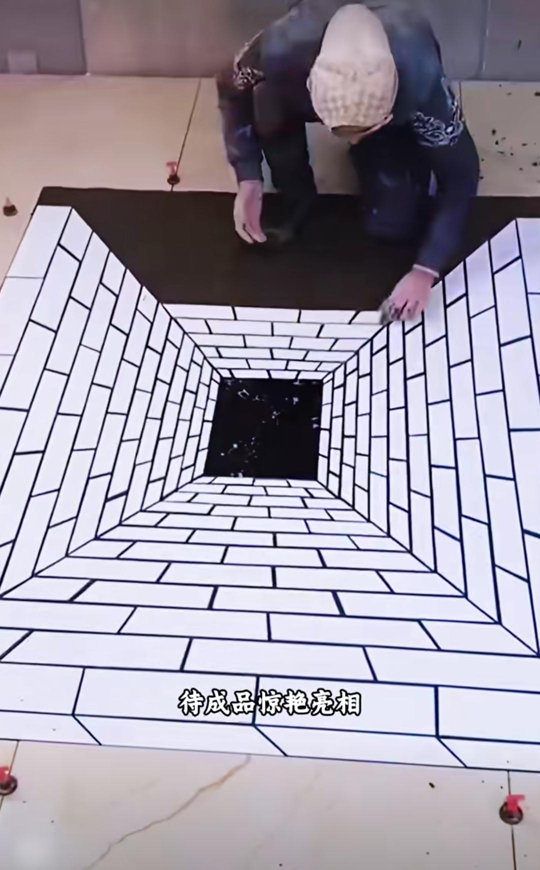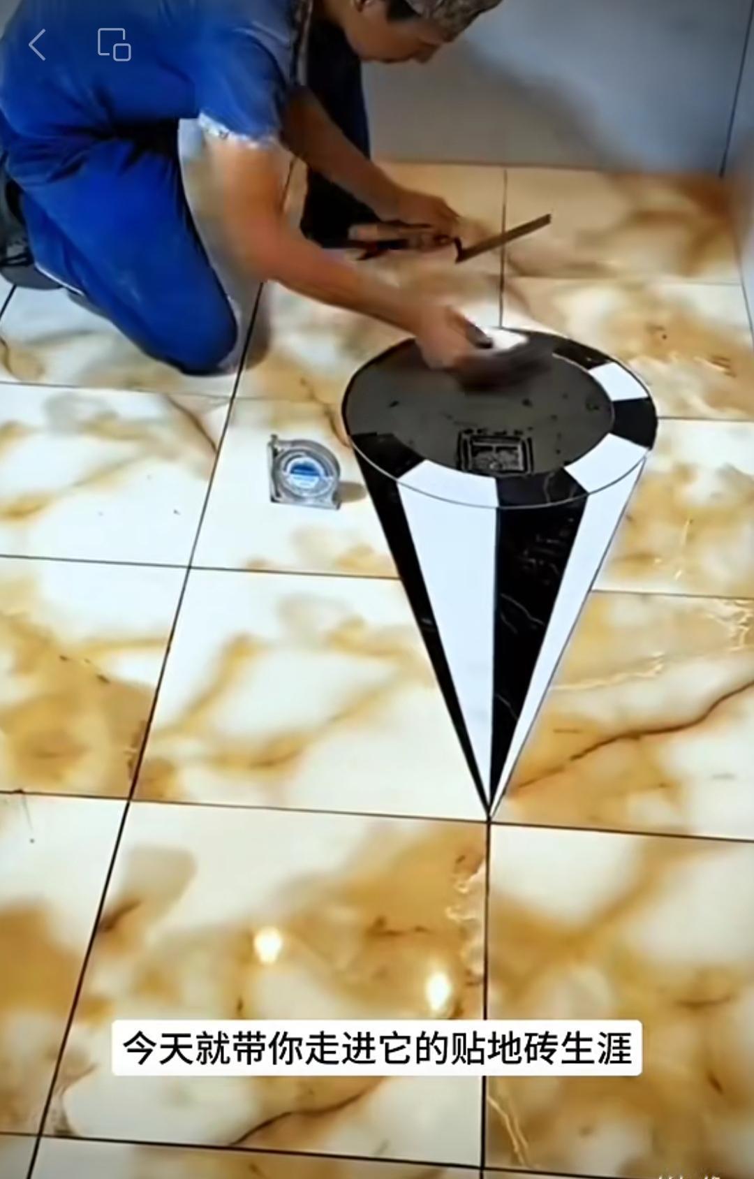 师傅运用3D思维,竟在地面上贴出这般震撼的图案,实在是太逼真了! 瞧瞧第一幅图片里的场景,贴出的“再见青春”四个字,仿佛悬浮在空中,让人真切地感觉“青春”已然飘远。 第二幅图中的“520”搭配“💞”,恰似送给过这个节日的男女的绝佳礼物🎁。 第三幅图的“深井”造型,营造出一种深不见底的氛围。 第四幅图贴出的“踏步”栩栩如生,让人忍不住想踏上去感受一番。 第五幅图中的9个矮“方柱”,令人产生错觉,“方柱”之间似有空格,又仿佛是层层累加的。 第六幅图中的“椅子”更为夸张,让人忍不住想坐上去体验一下。 最后一幅图中的“尖锥子”,乍一看,就像砌墙师傅用的吊线锥。 师傅能想出这样的方法贴地砖,无疑为房子增添了不少光彩。就师傅这手艺,在我们这儿根本找不到。不知师傅贴地砖时特意做出的这些3D图案,会不会让业主额外加钱呢? 懂行的师傅,能在评论区交流一下吗? 3d创意画