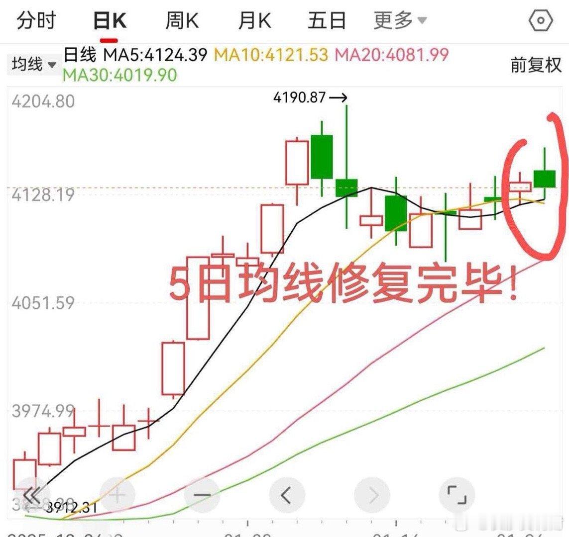 A股:大盘今天最高反弹到4160点,迹象表明了,明天周二,1月27日,A股可能这样走! 放量下跌,明天继续反弹? 今天各位可能慌了,你知道为什么吗? 主线全军覆没,个股超3700家下跌,那么现在是机会还是风险呢? 不啰嗦,我认为是机会! 第一:今天放量下跌,今天试探4150点压力后得而复失。我认为可以说是;虽败犹荣! 第二:大盘K线来看,K线再度修复抬高。是修复好的迹象,K线有阳继续迎来中阳! 第三;大盘5日均线来看,5日均线金叉10日均线,这是修复好的迹象,这是市场扭转多头迹象! 第四:3.2万亿成交量,不是现在牛市天量,更多是主升浪提振量,这量无熊! 第五:指数没有跌破4130点支撑,预计接下来行情继续修复4150点。 行情来到4150点站稳,那么持股到4180点前方一线高抛! 这个位置考虑4200点压力,站稳4200点后。行情才能继续迎来十年新高突破,牛市行情4200点并不高。 所以2026年上半年还有一定空间! 行情修复后,会继续奔跑,最起码主线跟指数会共振,大家认为呢?