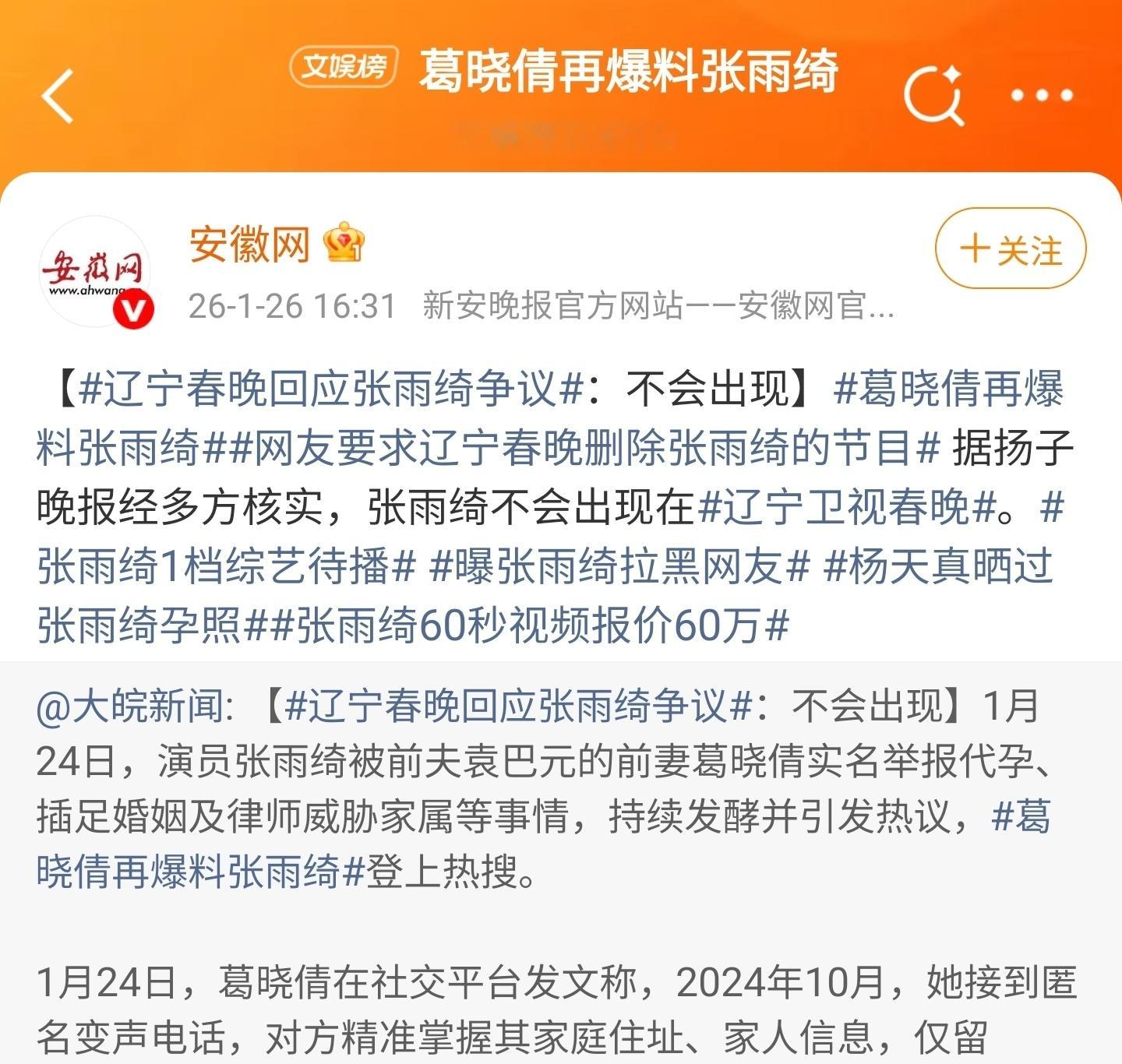 张雨绮有点倒霉了!好好的辽宁春晚彩排刚曝光白发造型,美到粉丝狂喜。结果转头就被葛晓倩带着一堆“没实锤”的料狂轰滥炸,直接被全网跟风抵制到节目被砍。葛晓倩翻来覆去就是那点八年前的旧账,所谓的“律师威胁”没实锤是张雨绮指使。“代孕”更是拿个出生日期差就瞎猜,连官方调查都没有就扣帽子!网友也是听风就是雨,不分青红皂白就冲去评论区骂,699袜子、脱口秀玩梗全被翻出来当黑料,合着艺人连正常表达都不行了?辽宁台也是怂得没话说,为了平息舆论直接一刀切删节目,完全不管张雨绮是不是被冤枉。她至今没回应不是心虚,分明是不想被牵着鼻子走,结果反而被骂“冷处理”。好好一个想在春晚给大家送欢乐的艺人,平白无故被泼一身脏水,事业还受影响。我要是张雨绮,就开个直播,把所有问题都给你回复一下,让大家好好看看什么叫身正不怕影子斜。