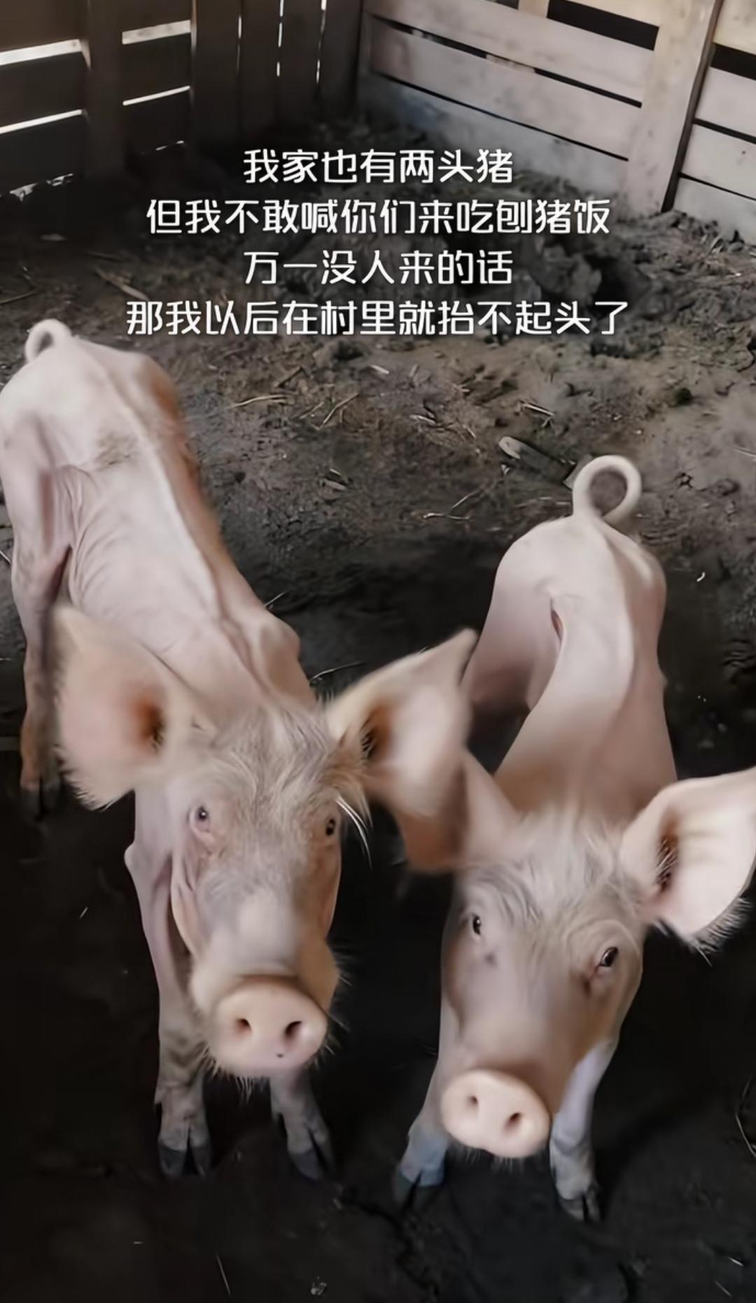 近日,与“刨猪宴”相关的话题层出不穷。有的地方靠请人“按猪”让家乡名声大噪,有的地方妄图复制“刨猪汤”活动,结果却让家乡丢尽脸面。说到底,这些人不过是想趁着年关将至,以免费请吃为幌子吸引眼球,实现自己不可告人的目的! 就如这位网友,他居然翻出这样的一个视频发到网上。视频中,两头瘦得皮包骨头的猪却精神头十足。面对向自己“打招呼”的这两头猪,拍视频的人竟对着镜头说风凉话:“我家也有两头猪,但我不敢喊你们来吃刨猪饭,万一没人来,那我以后在村里可就抬不起头了。” 看来,正因为身上没长肉,它们才没被选作“刨猪宴”的食材,暂时躲过一劫! 显然,这两头瘦骨嶙峋的猪是营养不良造成的。真搞不懂它们的主人为何如此虐待它们。 有知道猪瘦成这样,是什么原因造成的吗?欢迎到评论区聊聊! 年味刨猪宴