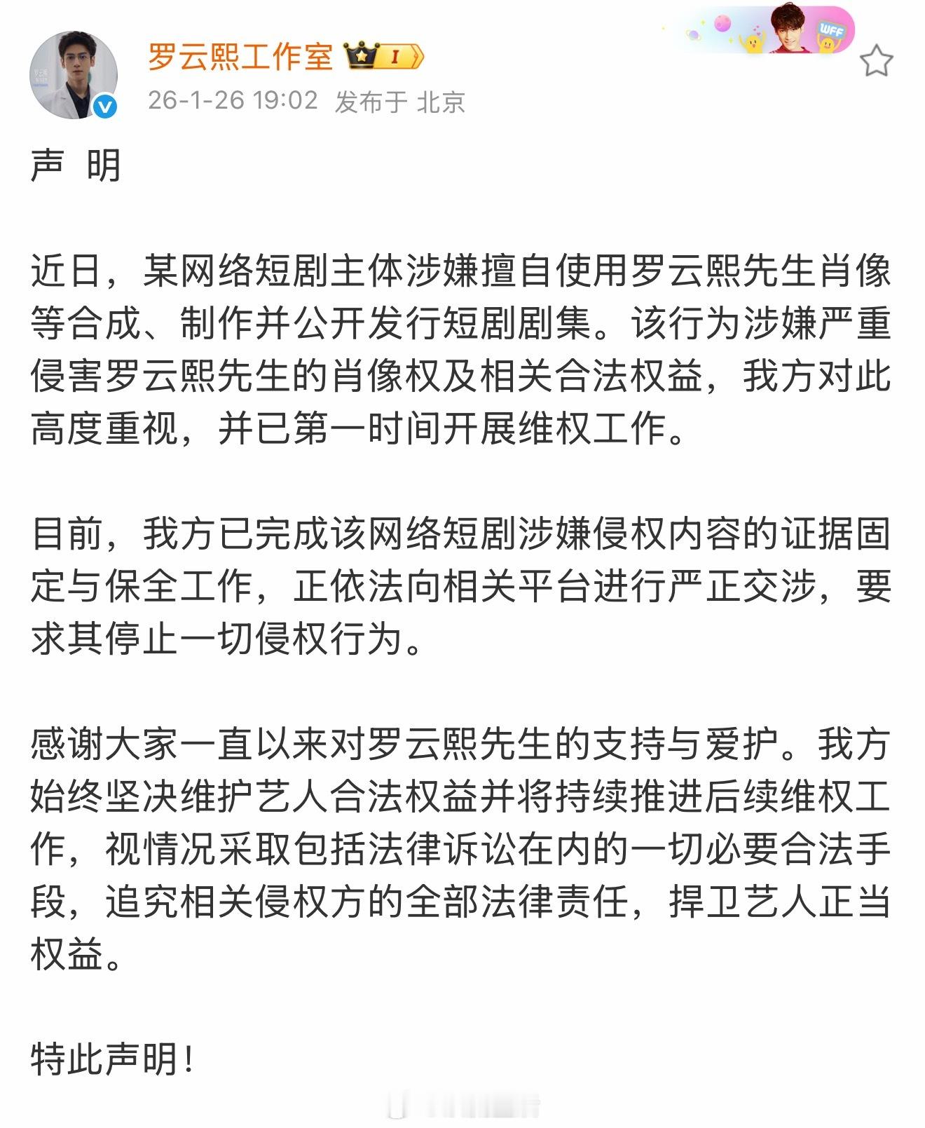 擅自使用罗云熙肖像合成制作短剧,好离谱啊。支持罗云熙维权!