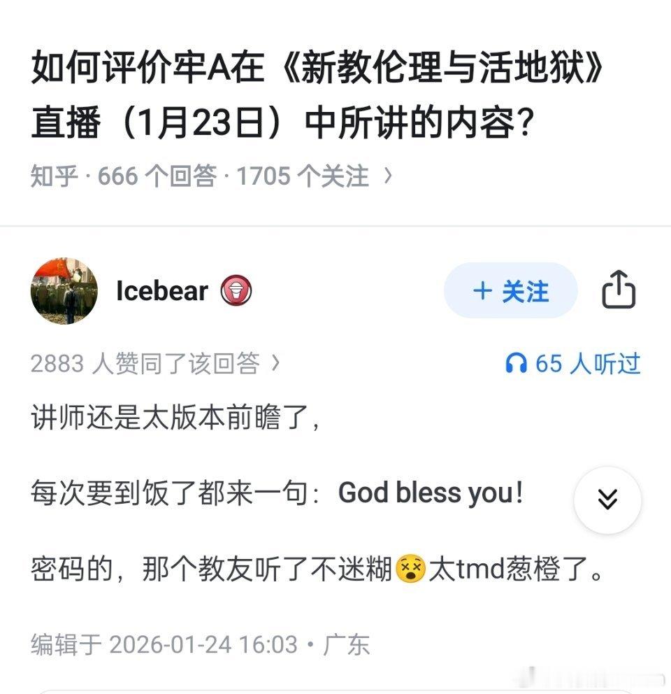 看完牢a直播才懂,讲师还是太版本前瞻了。在国外要饭一定要说:God bless you!给美国人刷功德,美国人会非常高兴。不能说thank you,因为你的感谢一文不值。牢A讲的很深刻的一段海外新鲜事