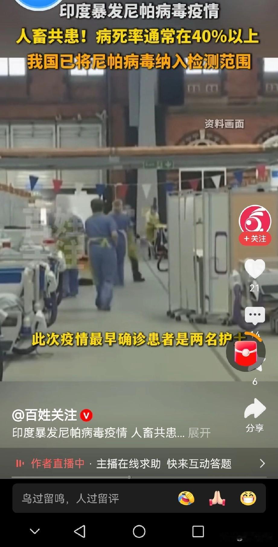 绝对是好消息 中国政府已经将尼帕病毒纳入入境检测范围 给中国政府点赞! 这种病毒在印度西孟加拉邦爆发! 主要是这种病毒太可怕,不亚于“非典” 尼帕病毒没有有效的疗法,也没有相关疫苗,就是无解的存在! 并且这种病毒致死率非常高,通常达到40%,最高达到75%,传染性非常强,人传人! 这种病毒主要来自于蝙蝠! 印度也是一个神奇的国家,不得不印度当地居民,居然没有太上心!中国政府将尼帕病毒纳入检测范围