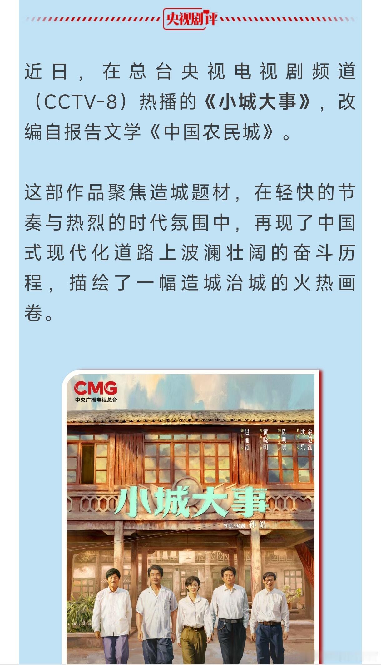 央视剧评—《小城大事》:好一幅造城治城的火热画卷——文艺是时代前进的号角。总台央