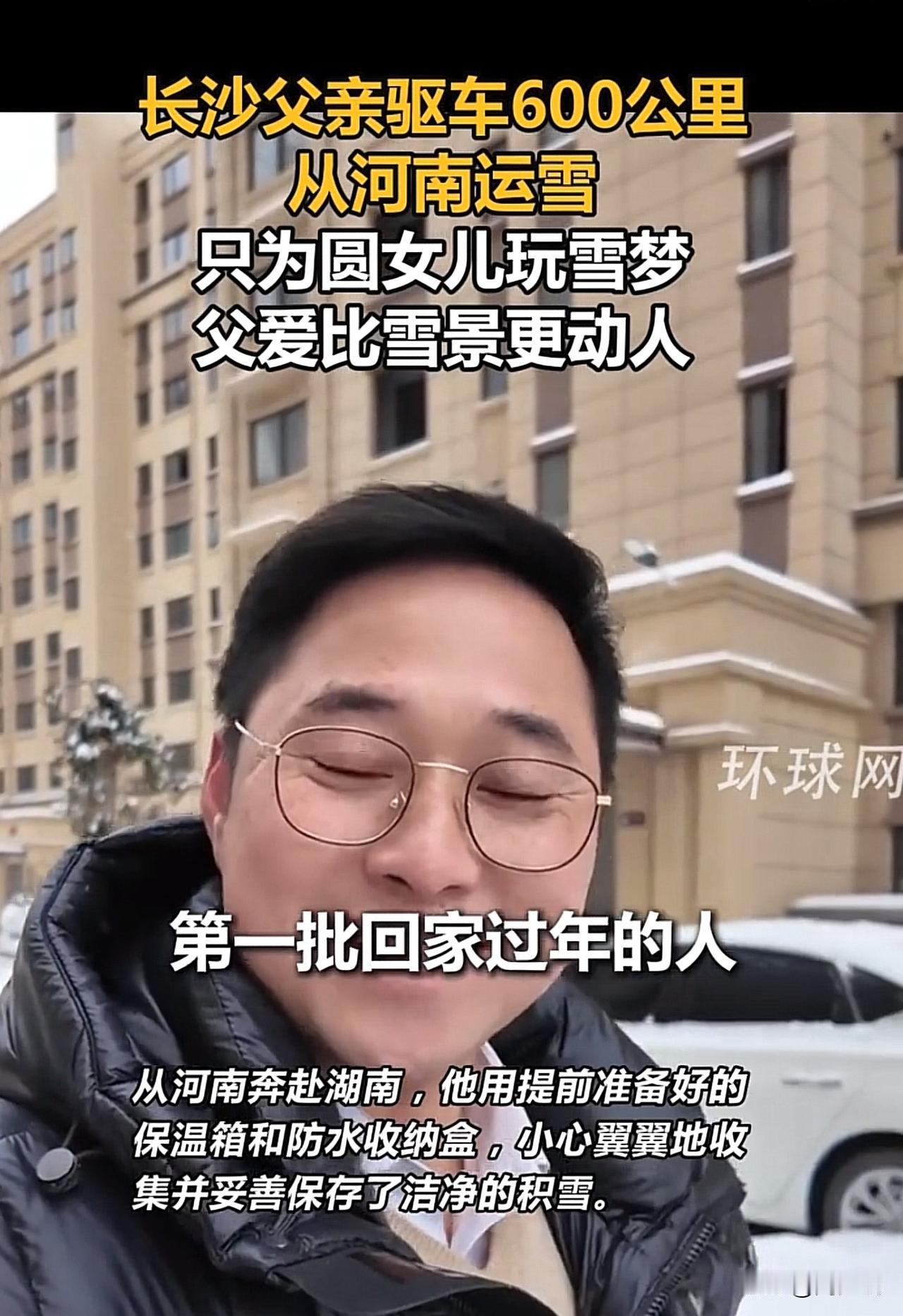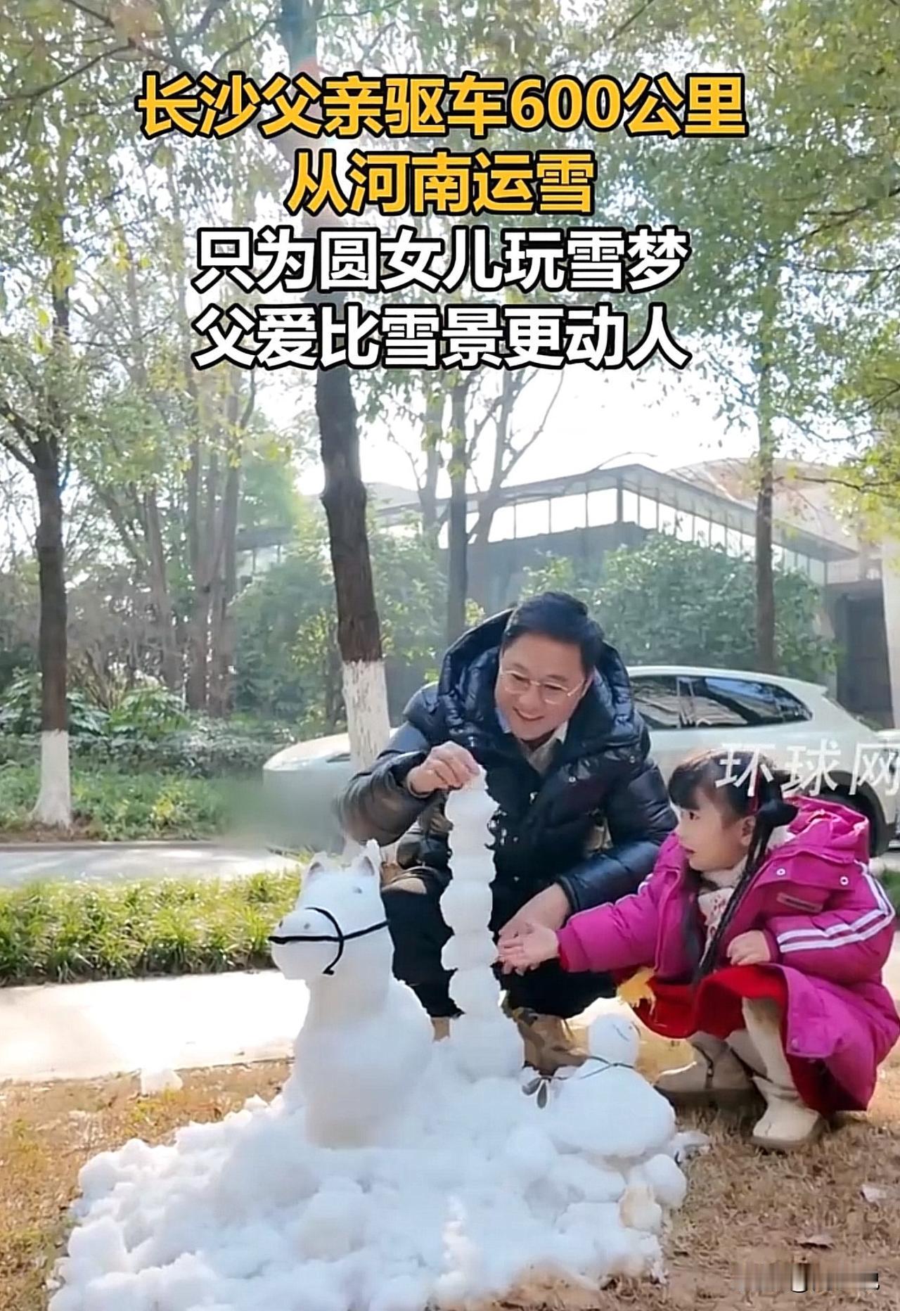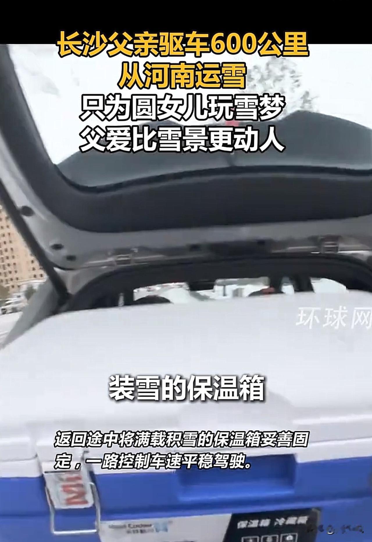 #父亲跨越600多公里为女儿送雪#“暖到哭!”河南一位男子只因姑娘随口念叨了一下雪,结果他二话不说装了满满一后备箱的雪,驱车620公里,一路奔波送到女儿面前。当后备箱掀开的那一刻,满箱白雪映着姑娘惊喜的笑脸,这一幕,直接暖哭了无数网友。 有网友说:“这哪是送雪啊,这是把女儿的小愿望,妥妥地捧在了手心里!” 还有网友感慨:“别人家的老爸从来没让人失望过,这份宠溺,真的羡慕了!” 周少想说这场跨越数百公里的“冰雪速递”,哪里是什么惊天动地的大事,不过是一位父亲把女儿的话放在了心上。 他或许不懂什么浪漫的大道理,却用最笨拙也最真诚的方式,告诉女儿:你的小小心愿,爸爸都会尽力满足。 由此可见,父爱从来都不是轰轰烈烈的口号,而是藏在这些细枝末节的行动里。它不像母爱那样直白热烈,却如山一般沉稳,在你需要的时候,总能给你最踏实的依靠。 这事也告诉我们一个道理,为人父母,其实不必苛求自己做到十全十美,有时候,一份放在心上的在意,就足以成为孩子一生的底气。#寻美三湘# #长沙新朋友#