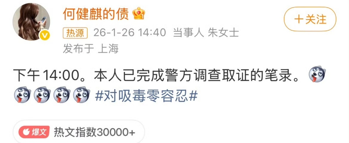 何健麒尿检这瓜吃不完了。何健麒尿检完晒饭,女方直接去做笔录硬刚到底。这边何健麒刚晒完尿检发检的完成认证,转头就晒出一大碗减脂餐,还笑着调侃“不是最近健身还真不够体力辟谣”,那轻松的样子仿佛啥事没有。那边爆料的朱女士也没在怕的,下午直接晒出“完成警方调查取证笔录”的动态,配上一串狗头表情和“对吸毒零容忍”的话题,这硬刚的架势,完全没打算松口。一边是云淡风轻晒饭的“辟谣者”,一边是铁了心要锤到底的“举报人”,两边各执一词,细节都给得足足的,根本分不清谁在说谎。涉毒是红线,造谣也违法,咱普通网友实在没火眼金睛辨真假。现在说啥都为时过早,就等警方的官方通报!到底是恶意诽谤还是实锤塌房,只有盖了章的结果才算数。