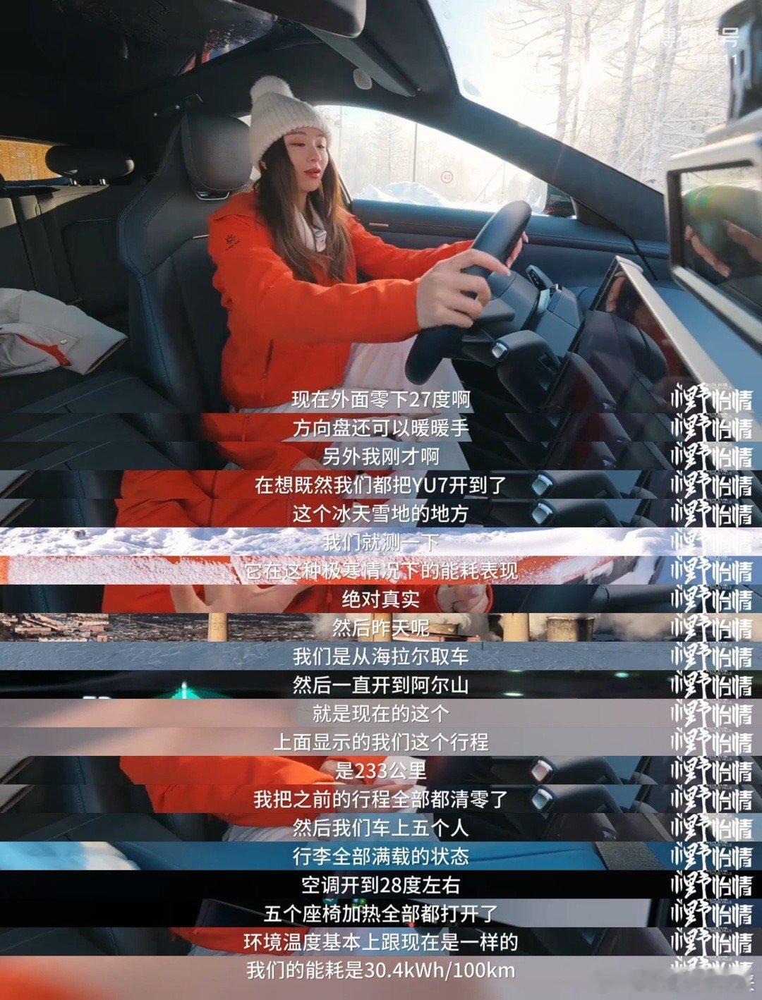 小米YU7这几波极寒测试,看得出来确实有真东西。哈尔滨零下22℃通勤一周续航剩余40%,对比去年SU7同场景的34%,能明显看出小米三电技术的提升。从哈尔滨到青岛的长途实测,全程开空调跑高速,能耗稳定在22-23度/百公里,这个控耗能力处于行业第一梯队水平了。不仅如此,在极限环境里的表现也很过关,零下40度的白骨之路,它是第一台开上勒拿河冰面的电动车,旁边保障车仪表盘都冻到跳表,它反倒全程动力稳定跑出了280公里续航。阿尔山零下27度,满载5人还开着28度空调,能耗30.4度,冰雪路的四驱抓地力和刹车、电门响应依然很稳。能有这成绩总的来说还是核心技术到位,双模热泵能回收热量,AI空调既防雾又省电,电池预热快还方便快充,加上白盒交付的系统级优化,确实是实打实的技术实力。