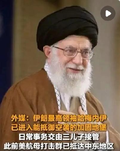 哈梅内伊藏身地堡 美国“林肯”号航母打击群已抵达伊朗附近海域,哈梅内伊进入了加固地堡,这些地堡由隧道相连,能够抵御空袭,他的日常事务交由三儿子马苏德·哈梅内伊接管。目前,伊朗从多个方面表态,称伊朗从未、也不会寻求核武器,并且将对侵略作出令敌人追悔莫及的回应。