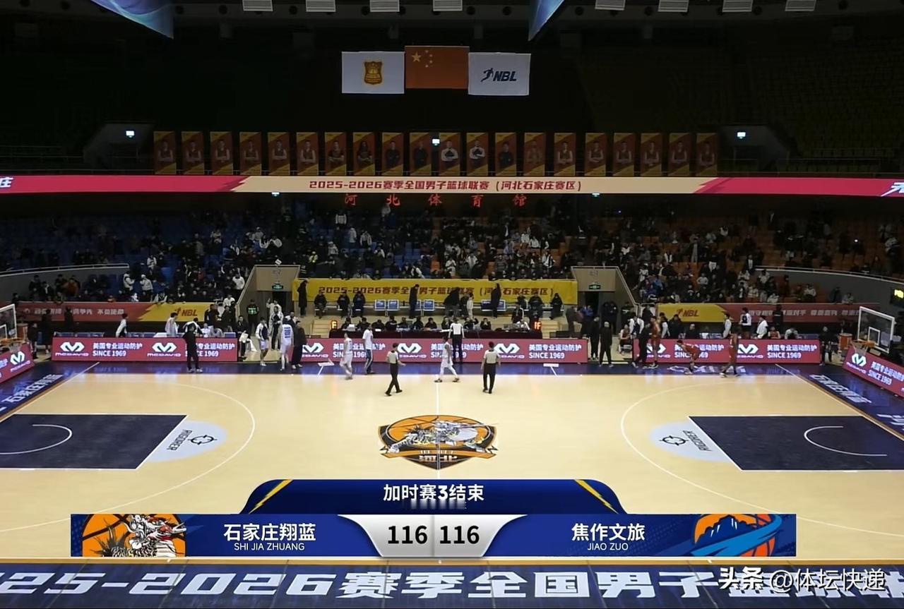 焦作文旅四加时客负石家庄翔蓝。NBL常规赛第14轮,焦作文旅客场挑战石家庄翔蓝。两队本赛季首次交手,焦作文旅主场获胜。威姆斯来到焦作后身披13号战袍出战。首节开始,石家庄翔蓝对霍尔德防守严密,其他球员投篮连续打铁,石家庄翔蓝一波7:0直接打停焦作文旅。暂停回来,威姆斯替下霍尔德,焦作文旅连续追分,将分差缩小到3分。石家庄翔蓝叫暂停。暂停回来,双方比分胶着,交替领先。首节结束,焦作文旅21:20石家庄翔蓝。次节双方比分依旧难分难解,石家庄翔蓝一度将分差扩大到5分,焦作文旅一记高炮台再次缩小分差。比赛末段,威姆斯连下4分,焦作文旅再次将比分反超。半场结束,焦作文旅45:44石家庄翔蓝。第三节开局焦作文旅内处开花拉大分差,随后突然失误增加,被石家庄翔蓝内外联动追上比分,李维纲指导叫暂停。暂停回来,焦作文旅一波攻击流再次建立领先,石家庄翔蓝叫暂停。暂停回来,双方互有攻守。三节战罢,焦作文旅68:61石家庄翔蓝。第四节开局焦作文旅一度扩大分差,但突然失误增加,被石家庄翔蓝逐渐追上比分。随后双方多次战平。比赛末段,石家庄翔蓝外线回暖,两记高炮台将分差扩大到6分。随后焦作文旅连下6分再次追平比分,时间只剩38秒。随后双方再无建树,双方进入加时赛。加时赛双方经过艰苦拼搏,再次战成95平。再加时加时赛石家庄翔蓝一直占优,焦作文旅压哨三分命中再次追平比分,109平,进入第三个加时赛。第三个加时赛双方再次战成116平,进入第四个加时赛,经过四个加时赛,石家庄翔蓝132:127逆转焦作文旅,收获胜利。 综述:一场普通的比赛,让球迷吐槽不已。一是裁判的执法能力确实不足,真的需要好好提高。二是加时赛设置太不合理。毕竟这是商业类的比赛,应该多考虑商业价值,四个加时20分,感觉无法理解。