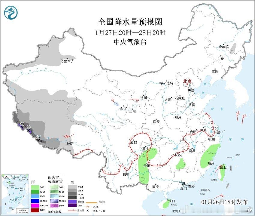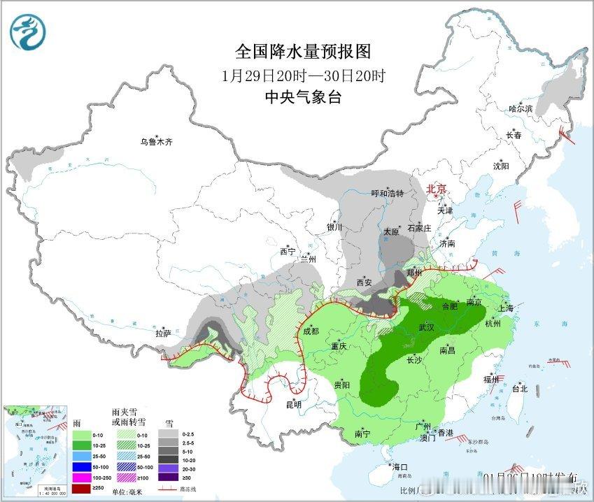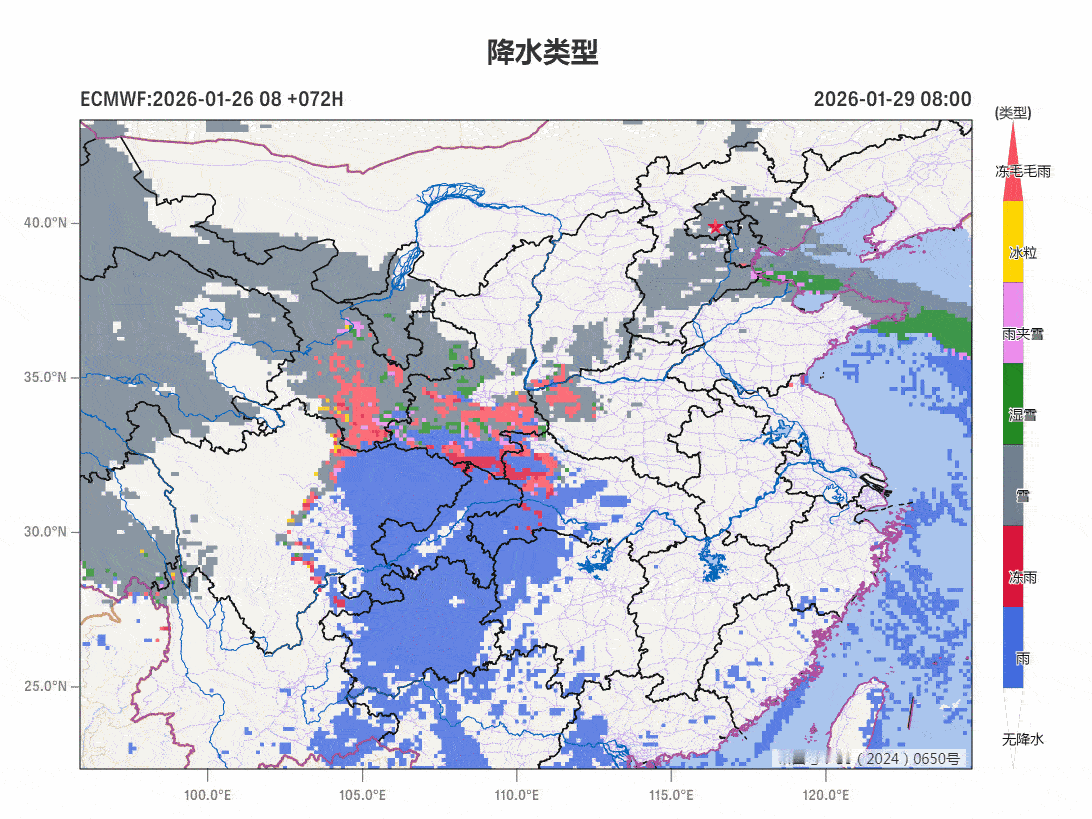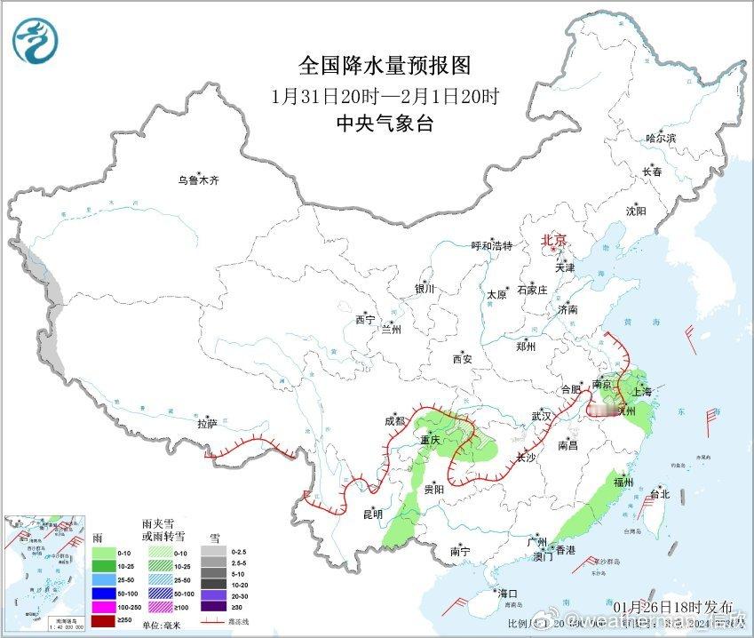 【降水】昨晚到今天,降水发展增多。江苏部分站点出现中雨。未来2天东部地区降水南压减弱。西部地区降雪再次发展增多。新疆西南部和西藏西南部可能有大雪-暴雪,局地大暴雪,对应高空槽前的南风输送水汽,并且槽前上升运动加上地形抬升助力。这个高空槽后期继续东移,29-31日中东部也会出现一轮大范围雨雪。29日白天-30日晨降雪最强,河南和周边可能出现大雪。而且陕西南部、湖北西北部等地还有可能出现冻雨。这轮降水的雨雪分界线可能推进到长江中下游地区。2月1-2日降水明显收敛。