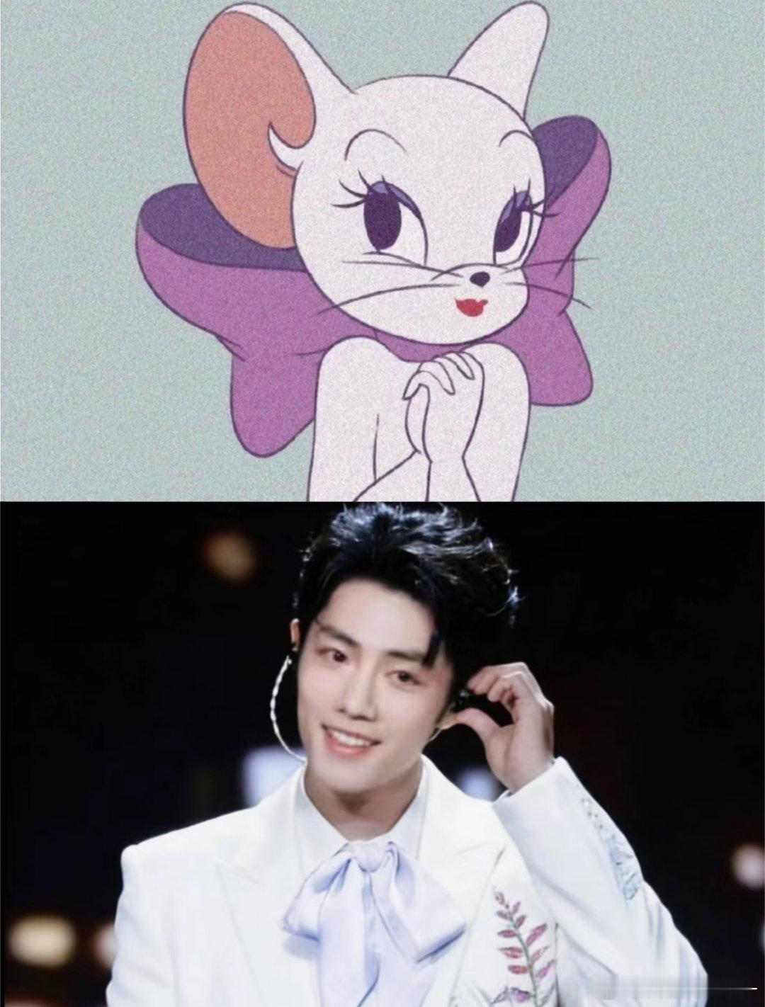 肖战这套衣服加上一个蝴蝶结 好像汤姆猫里的小白猫!!!
