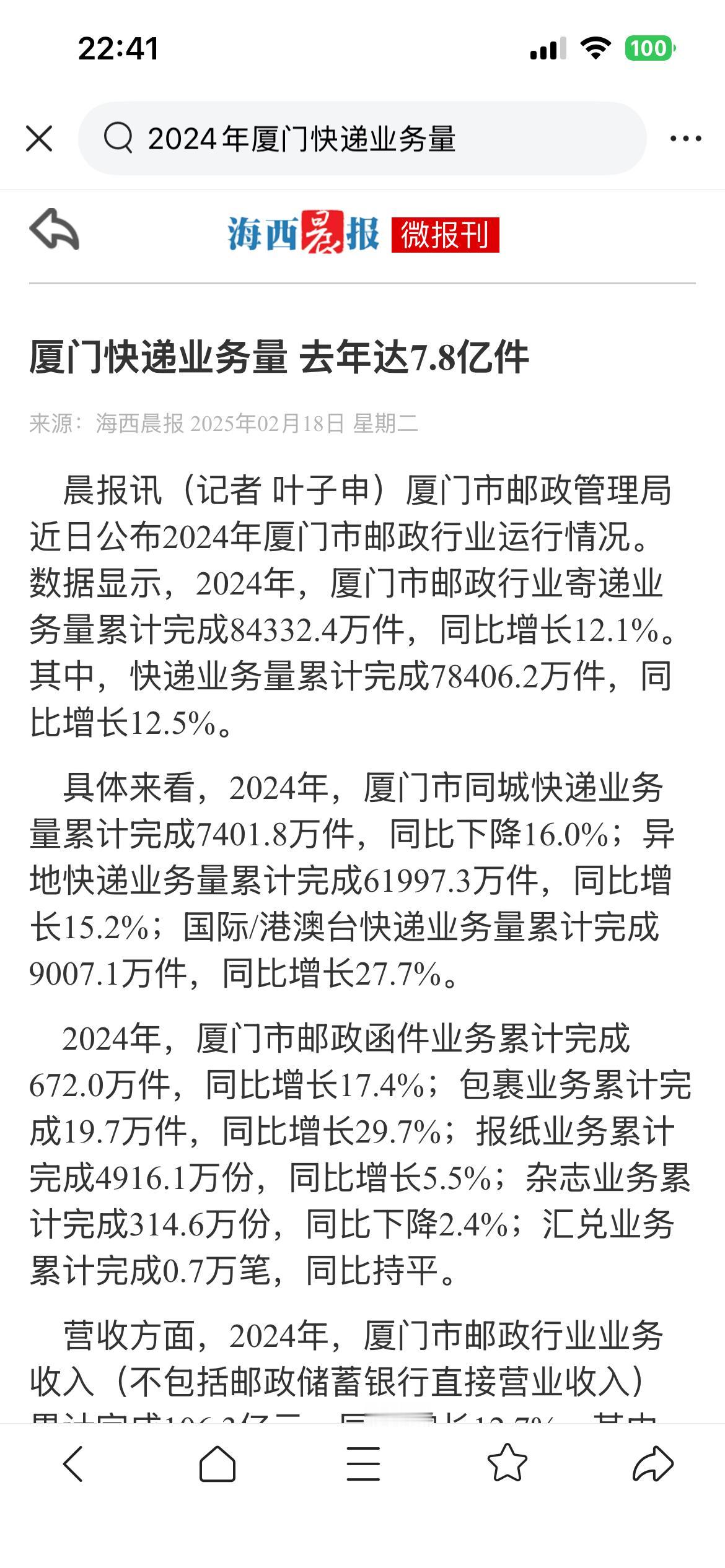 2024年 福州,厦门 快递量 2024年 福州快递量:7.88亿件 2024年 厦门快递量: 7.84亿件