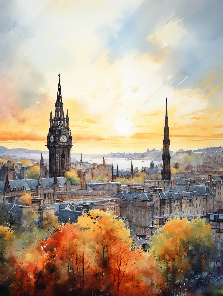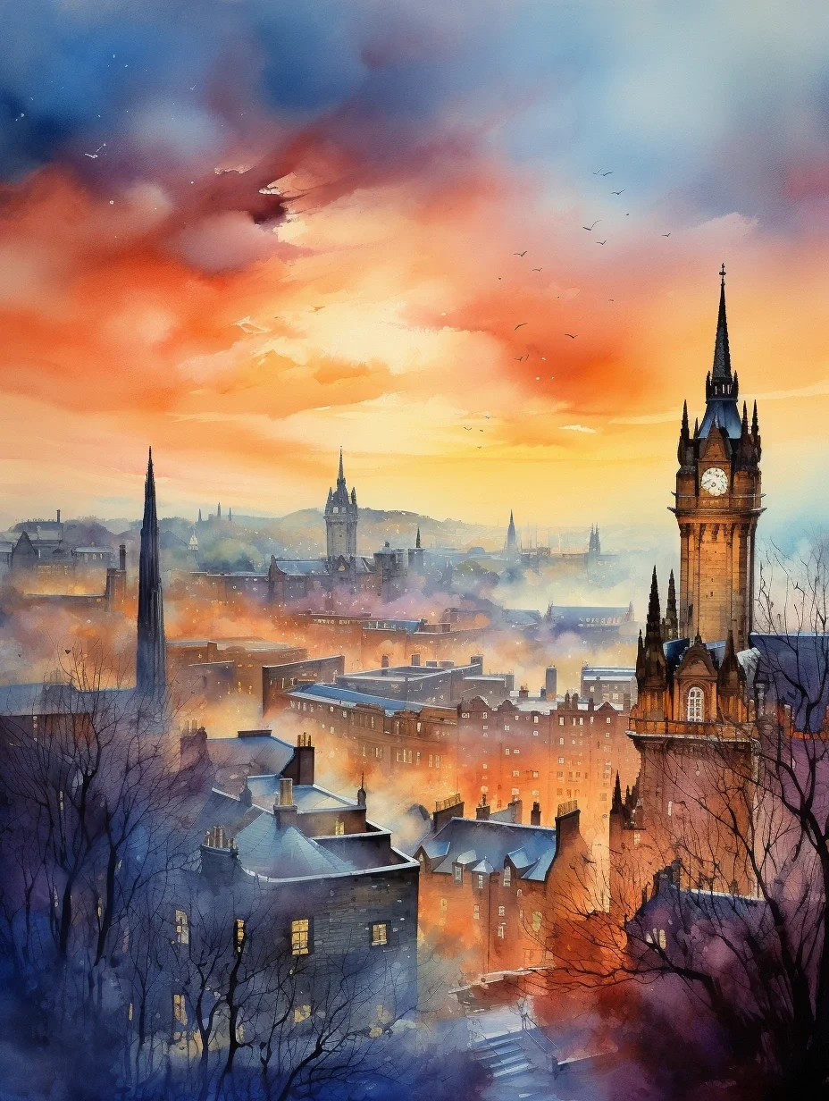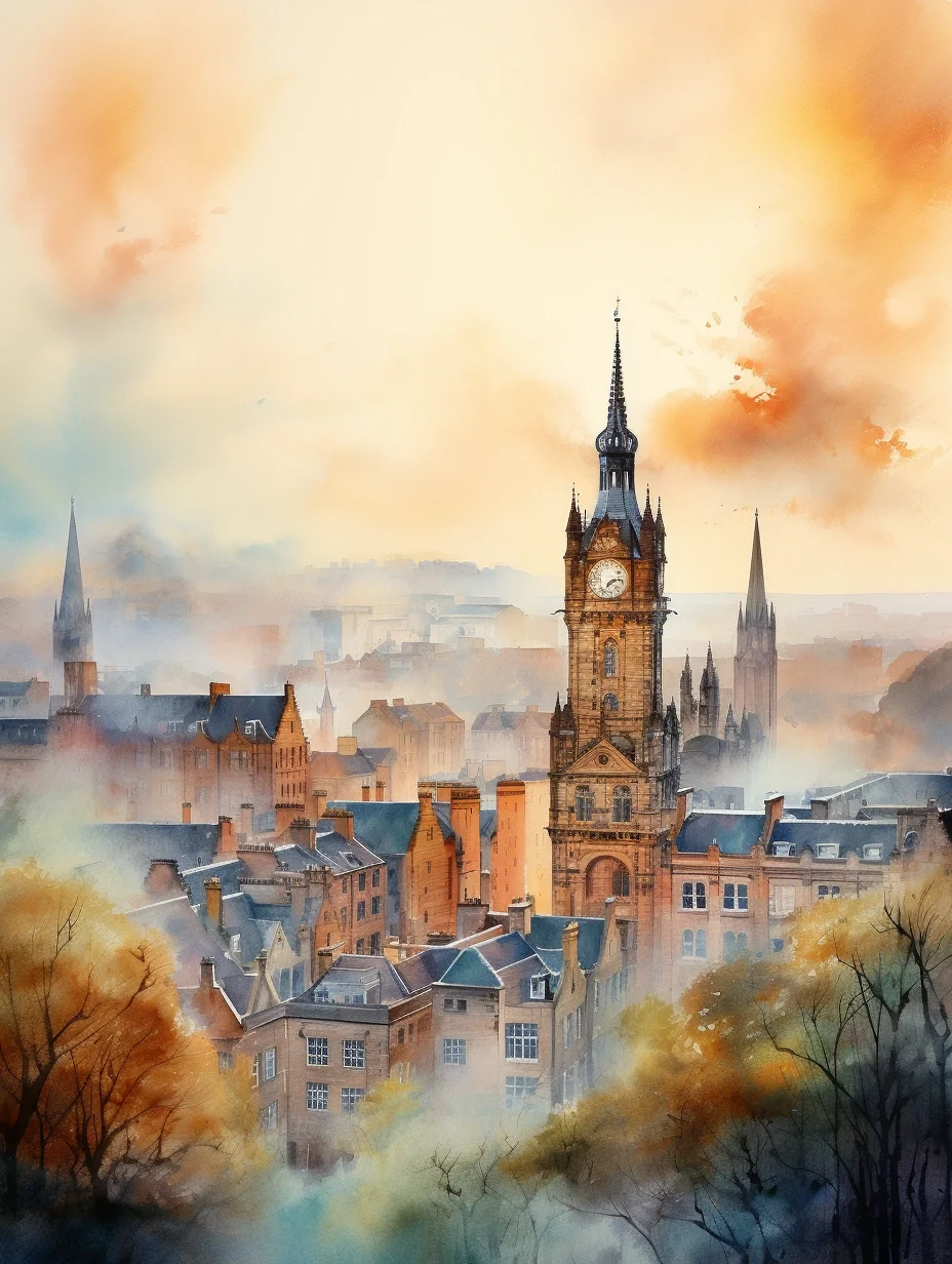 AI水彩:爱丁堡,清冷又浪漫的城市