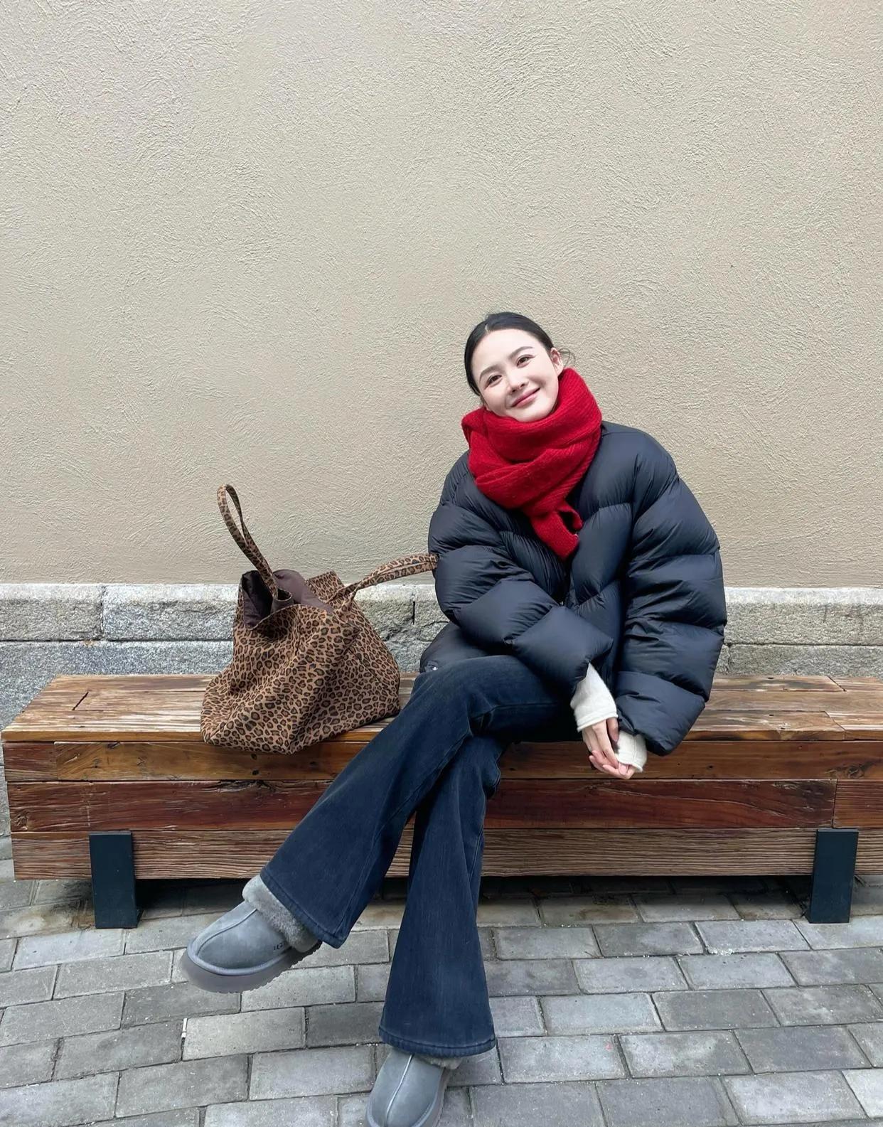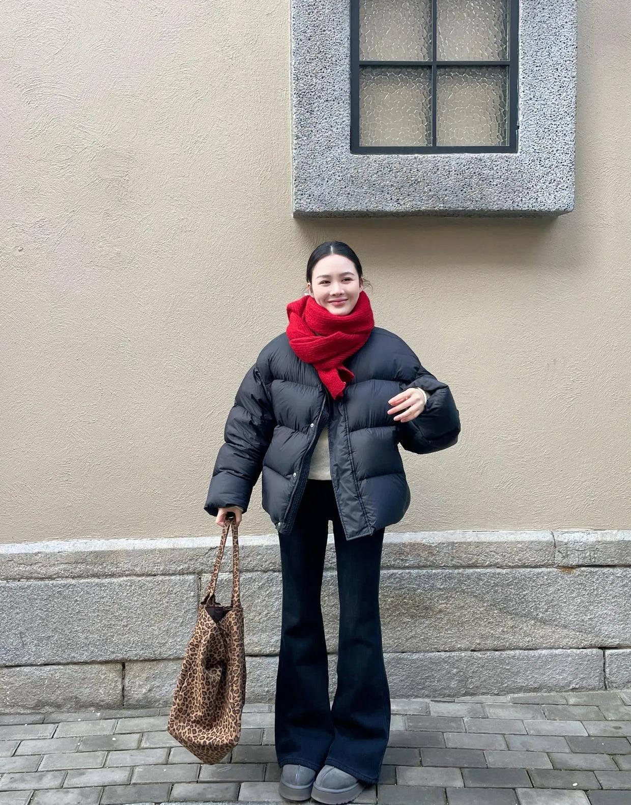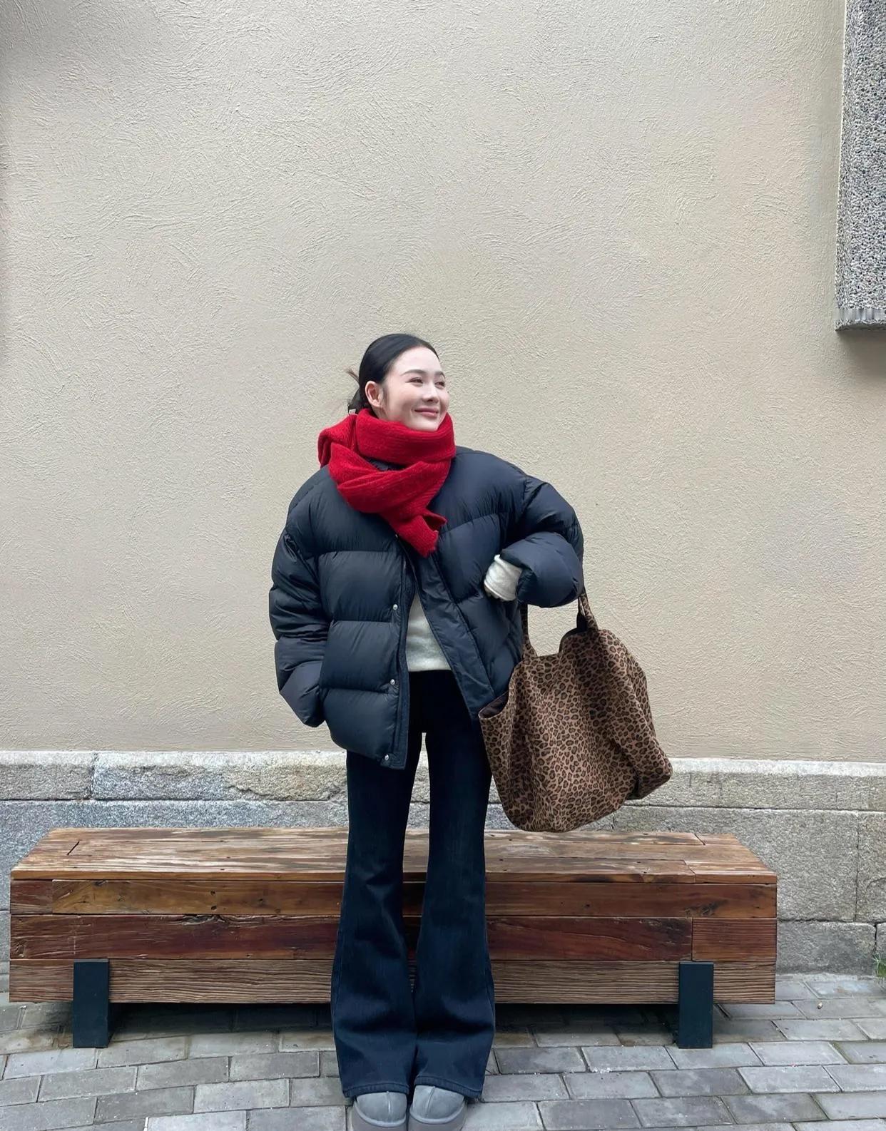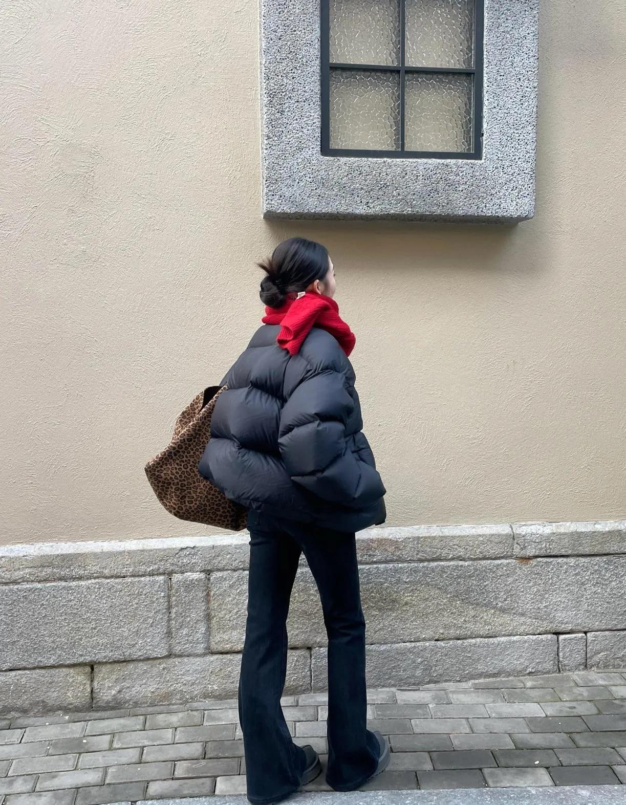 红黑配才是冬日穿搭的王炸组合🔥 谁懂啊!这一身真的把“保暖又时髦”玩明白了! 短款黑色羽绒服+拖地喇叭裤,上下同色系直接把腿长拉到两米八,小个子也能轻松驾驭。一条正红色围巾瞬间点亮全身,年味儿直接拉满。 最绝的是这个豹纹托特包,复古又吸睛,一下子就打破了黑红的单调感,慵懒又高级。 这波穿搭思路直接抄作业,过年走亲访友这么穿,长辈夸、同辈羡!