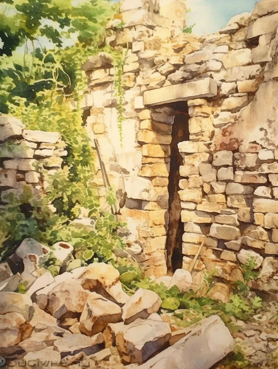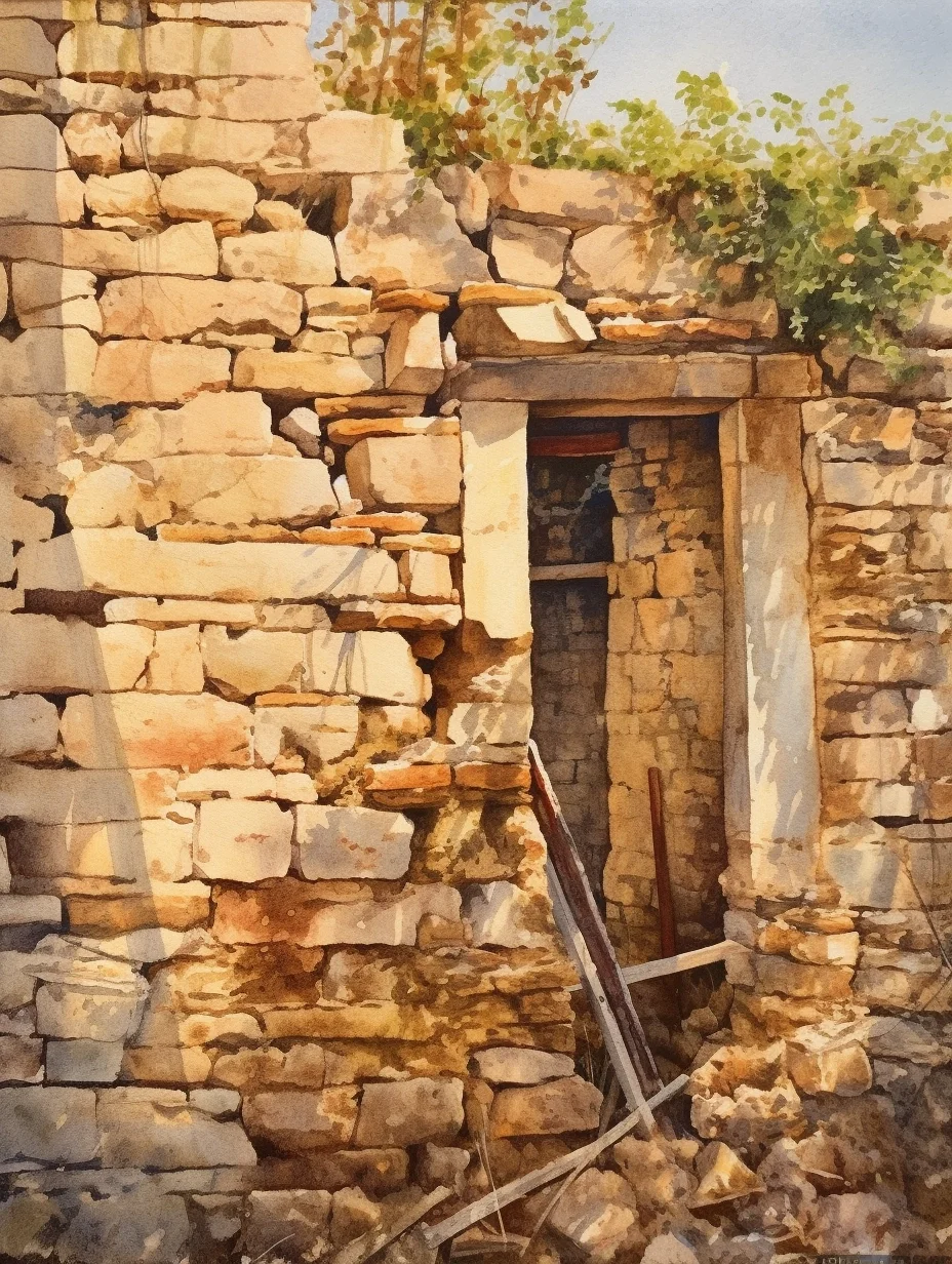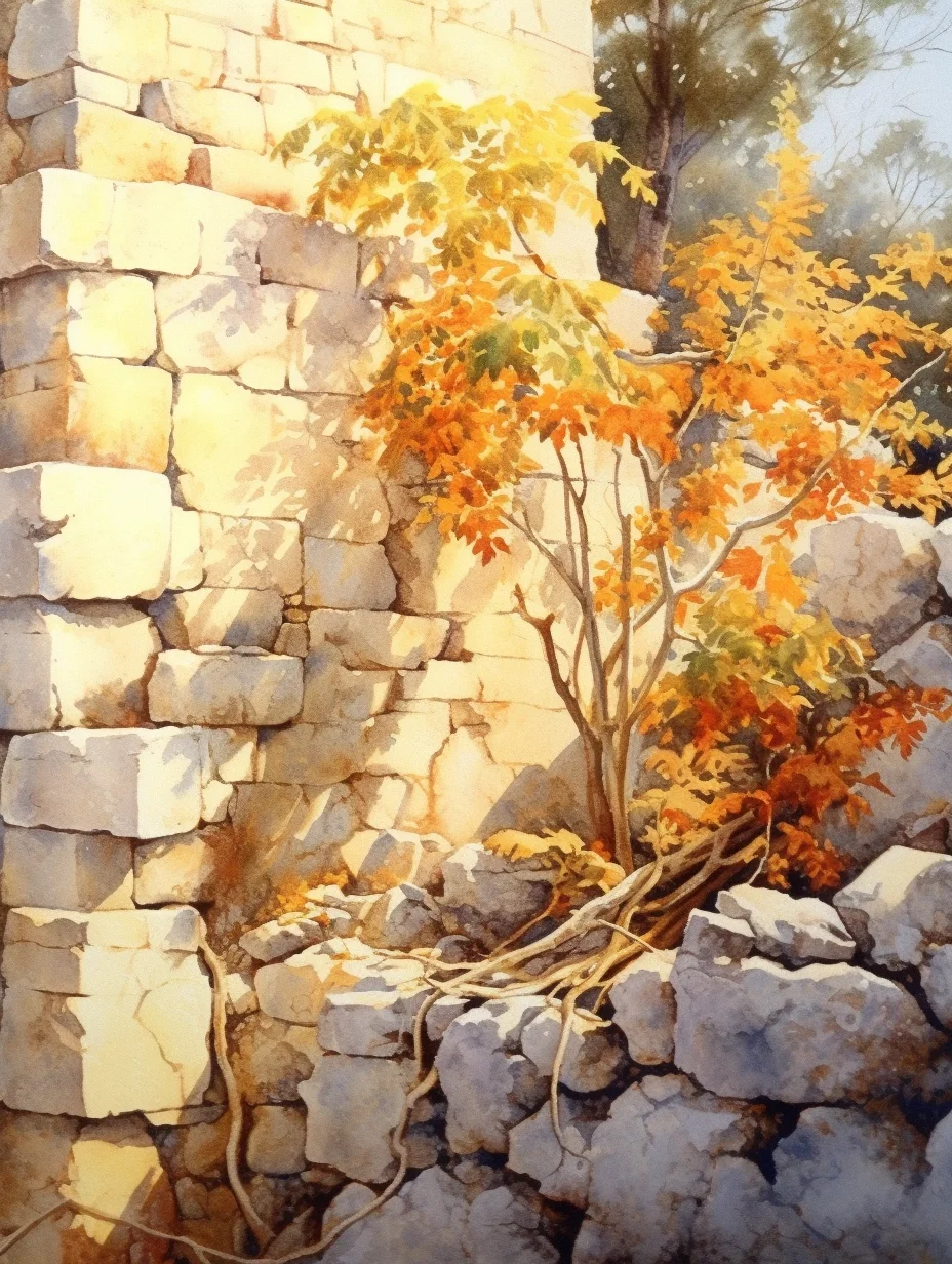 AI水彩:石墙