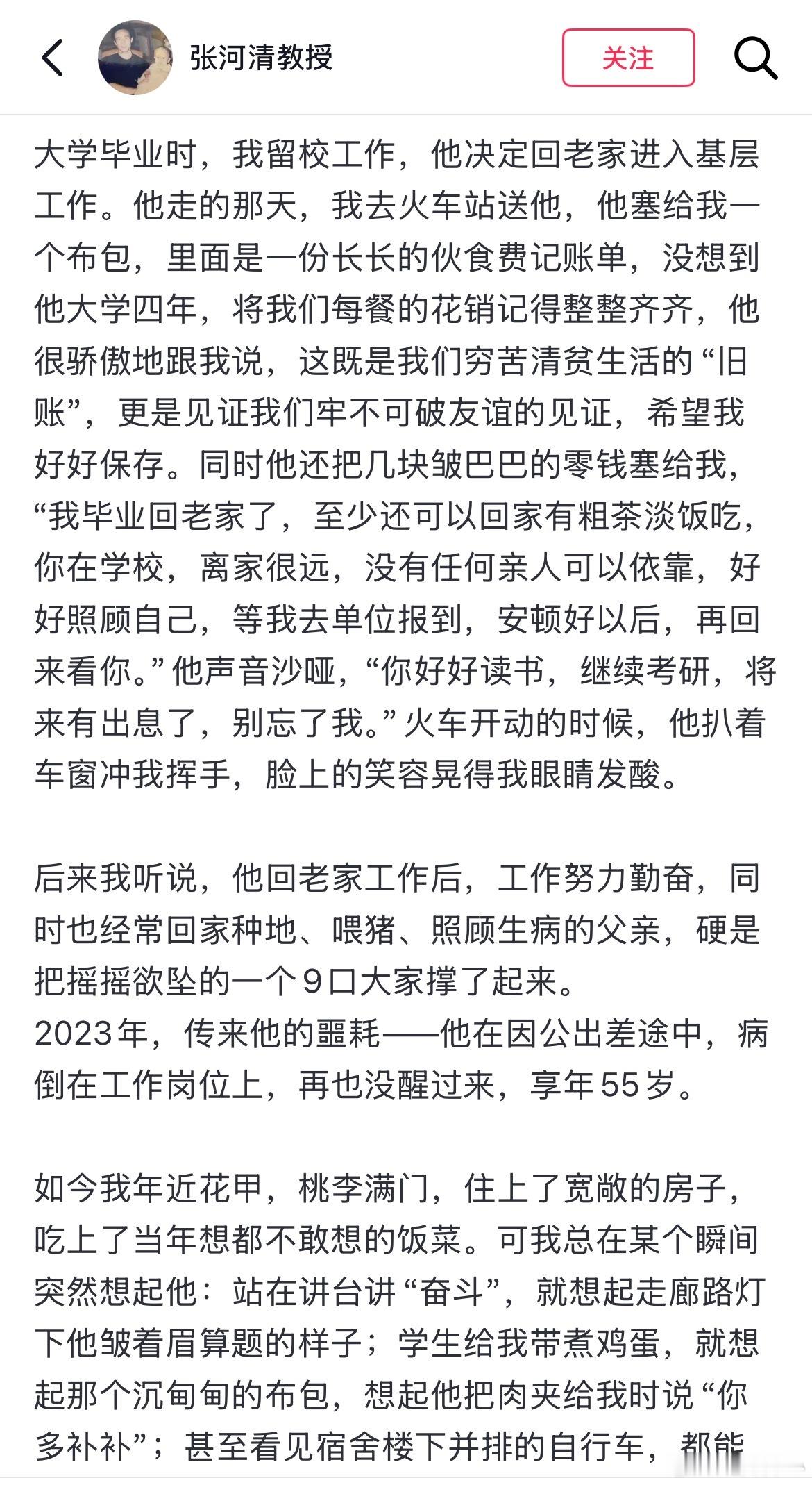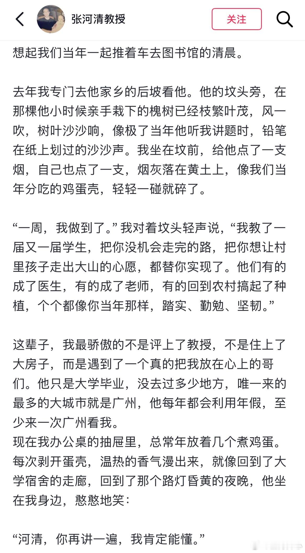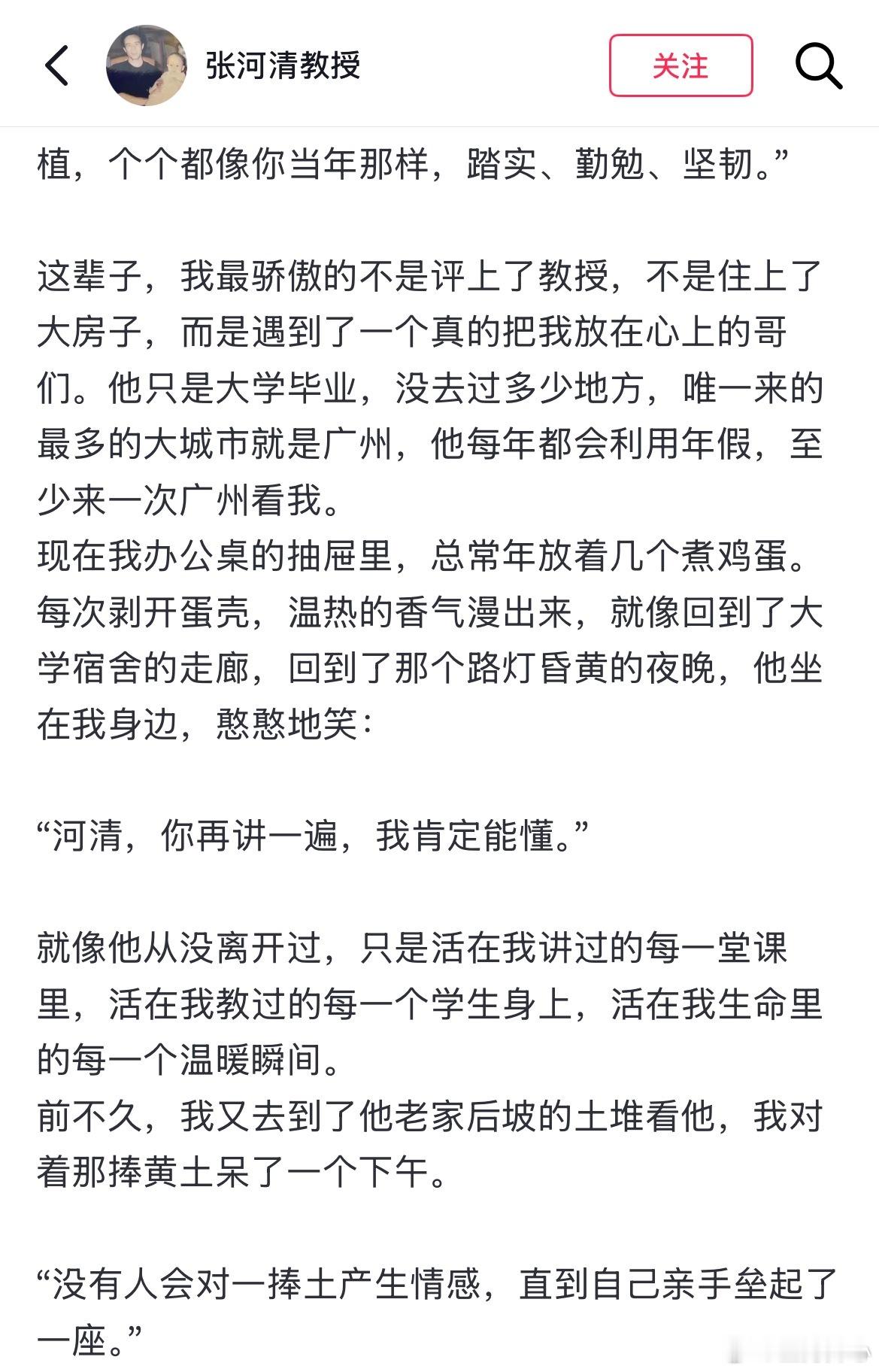 【抖音选文—张河清教授】泪目的话:前不久,我又去到了他老家后坡的土堆看他,我对着在那捧黄土呆了一下午。没有人会对一捧土产生情感,直到自己亲手类起的一座。
