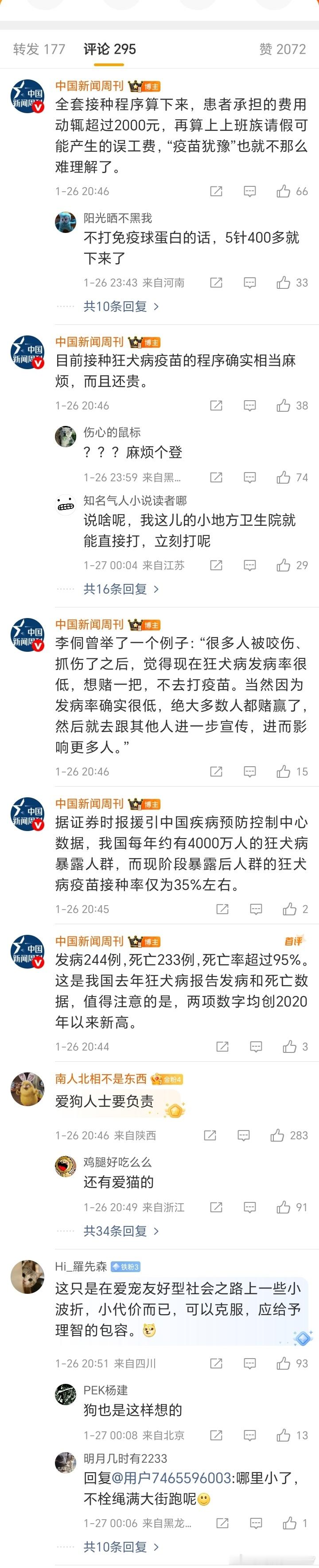【我国狂犬病死亡数创2020年来新高】我国狂犬病暴露人群仅35%接种疫苗 发病244例,死亡233例,死亡率超过95%。这是我国去年狂犬病报告发病和死亡数据,值得注意的是,两项数字均创2020年以来新高。据中国疾病预防控制中心数据,自2006年实施狂犬病综合防控措施后,我国狂犬病病例数在2007年达到3300例的高峰,随后进入长达16年的下降期,却在2024年出现了反弹,较前一年增加超过30%。到2025年,发病和死亡两个数字都呈陡增之势,比2024年又增长了50%左右。狂犬病,是狂犬病病毒(RABV)感染引起的一种人兽共患传染疾病。该病毒主要影响中枢神经系统,患者发病后,会出现恐水、畏光、怕风等症状。目前尚缺乏对该病的特异性治疗,致死率接近100%。据证券时报援引中国疾病预防控制中心数据,我国每年约有4000万人的狂犬病暴露人群,而现阶段暴露后人群的狂犬病疫苗接种率仅为35%左右。(中国新闻周刊)