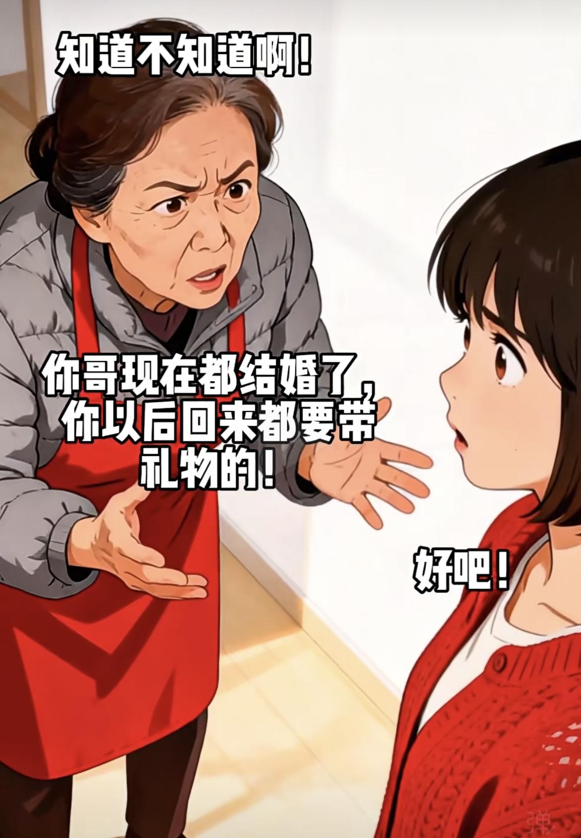 “ 闺女,你现在回家,怎么不买点东西,也太不懂事了,你哥结婚了,不买东西 不太礼貌 ”[笑哭][笑哭]