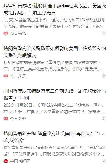 真别以为拜登老糊涂了,有一句话他说得真对,美国如果继续让特朗普领导,迟早要丢掉世界第一的位置。 麻烦看官老爷们右上角点击一下“关注”,既方便您进行讨论和分享,又能给您带来更多优质的内容,感谢您的支持!   拜登虽然年事已高常被外界质疑状态,但他说过的一句话却切中了美国的要害,那就是如果让特朗普继续领导美国,这个国家迟早会丢掉世界第一的位置。这番话并非拜登为了竞选的随口指责,而是基于美国现实处境和特朗普执政轨迹的判断,背后藏着美国当下的诸多问题。   特朗普首次入主白宫的四年,把美国多年来的外交根基搅得一团糟。面对北约、欧盟这些相处数十年的亲密盟友,他没有半点合作的态度,反而动辄冷嘲热讽,还拿着关税大棒四处挥舞,把贸易当成胁迫盟友的工具,让美国的信誉一次次受损。   他喊出的 “美国优先” 口号,听着是为美国谋利,实际却是把美国和全世界对立起来。对欧洲盟友,他不仅要求对方承担更多北约军费,还随意加征关税,甚至用关税威胁索要领土,让跨大西洋的盟友关系出现了难以弥补的裂痕。   在对华关系上,特朗普执意发动贸易战,以为靠高额关税就能阻挡中国商品,还能让美国制造业回流本土。可现实却是,这场贸易战没有达到预想效果,美国本土的制造业占比依旧低迷,反倒是关税成本大多落到了美国企业和消费者头上。   贸易战带来的连锁反应,直接加剧了美国国内的通胀问题,财政收支的失衡状况也愈发严重。本想通过贸易战让美国经济更加强势,结果却让美国经济陷入了滞胀的困境,普通民众的购买力也跟着不断缩水。   拜登上台之后,虽然想要扭转特朗普的激进政策,却在对华经贸问题上延续了部分强硬手段,没能从根本上解决美国经济的症结,也让中美之间的经贸摩擦迟迟无法彻底缓解,这也让外界看到美国政坛在对华政策上的偏执。   2020 年的美国大选,特朗普输掉选举后却不愿接受结果,公然质疑选举的公正性,甚至纵容自己的支持者冲击国会大厦。这一行为直接冲击了美国标榜的选举制度和司法体系,成为美国民主史上的一道伤疤。   让人意外的是,特朗普的这番举动,却被美国国内一部分选民视为 “反建制英雄”。这些选民对美国传统政治体系充满不满,把特朗普当成了打破常规的代表,这也让美国国内的政治撕裂变得更加明显。   特朗普的支持者和反对者形成了尖锐的对立,不同的政治理念和立场让美国社会难以凝聚共识,街头的抗议和对峙成了常态,这种内部的分裂,让美国的国家治理效率大打折扣。   放在以前,美国凭借着经济、军事和科技的绝对优势,在国际上一家独大,就算有内部问题,也能靠着硬实力掩盖。但当下的国际格局早已不同,多极化的趋势越来越明显,各国的发展让美国的优势不断缩小。   如果特朗普二次执政,按照他的执政思路,只会进一步削弱对盟友的承诺。他的孤立主义和交易式外交,会让美国的盟友体系继续瓦解,欧洲各国已经开始寻求战略自主,不再一味依附美国,美国的全球领导力也随之不断下降。   特朗普的政策还会继续激化美国国内的撕裂,他的执政方式偏向于迎合部分选民,而不是弥合分歧,这会让美国的社会矛盾越来越深,从政治延伸到经济、民生等各个方面,让国家发展失去内驱力。   更关键的是,特朗普的一系列操作,会持续消耗美国的战略耐心和国际信用。在国际事务中,美国不再是那个言出必行的领导者,而是出尔反尔、唯利是图的国家,各国在和美国合作时都会多加提防。   美国的美元霸权、科技优势这些维系世界第一的根基,也在特朗普的政策下不断被消耗。他为了短期利益削减高端制造业和基础研究的投入,让美国的创新能力有所下滑,而其他国家却在迎头赶上。   拜登的判断,本质上是看清了特朗普执政模式对美国的伤害。这种以短期利益为目标、以对抗和孤立为手段的治理方式,正在一点点掏空美国的根基,让美国的世界第一位置摇摇欲坠。   美国想要保住自己的地位,需要的是弥合内部分歧、重建盟友信任、找准自身发展方向,而不是特朗普式的激进和偏执。如果继续让特朗普领导,美国丢掉世界第一的位置,或许就不是预言,而是即将到来的现实。