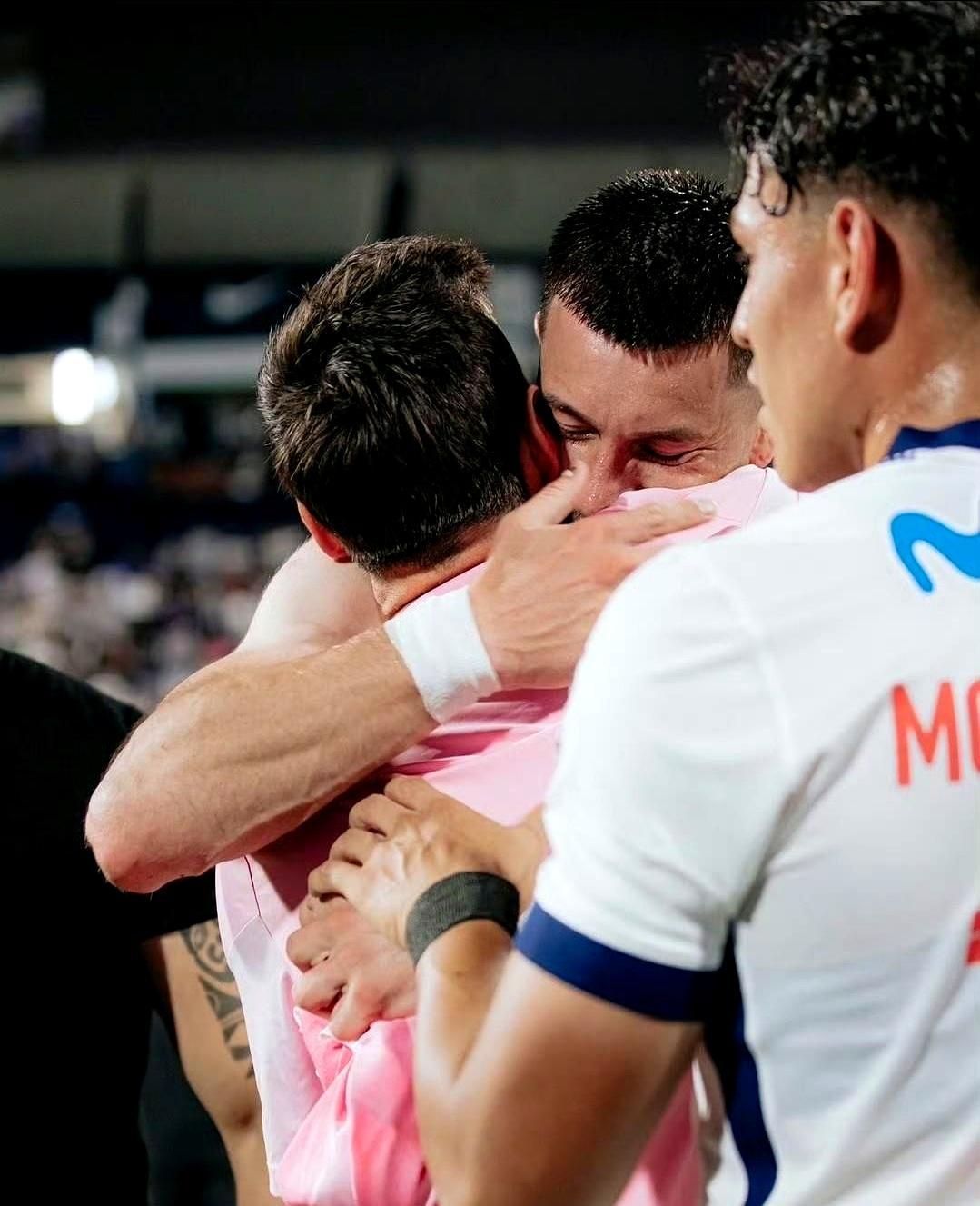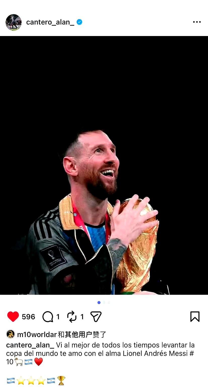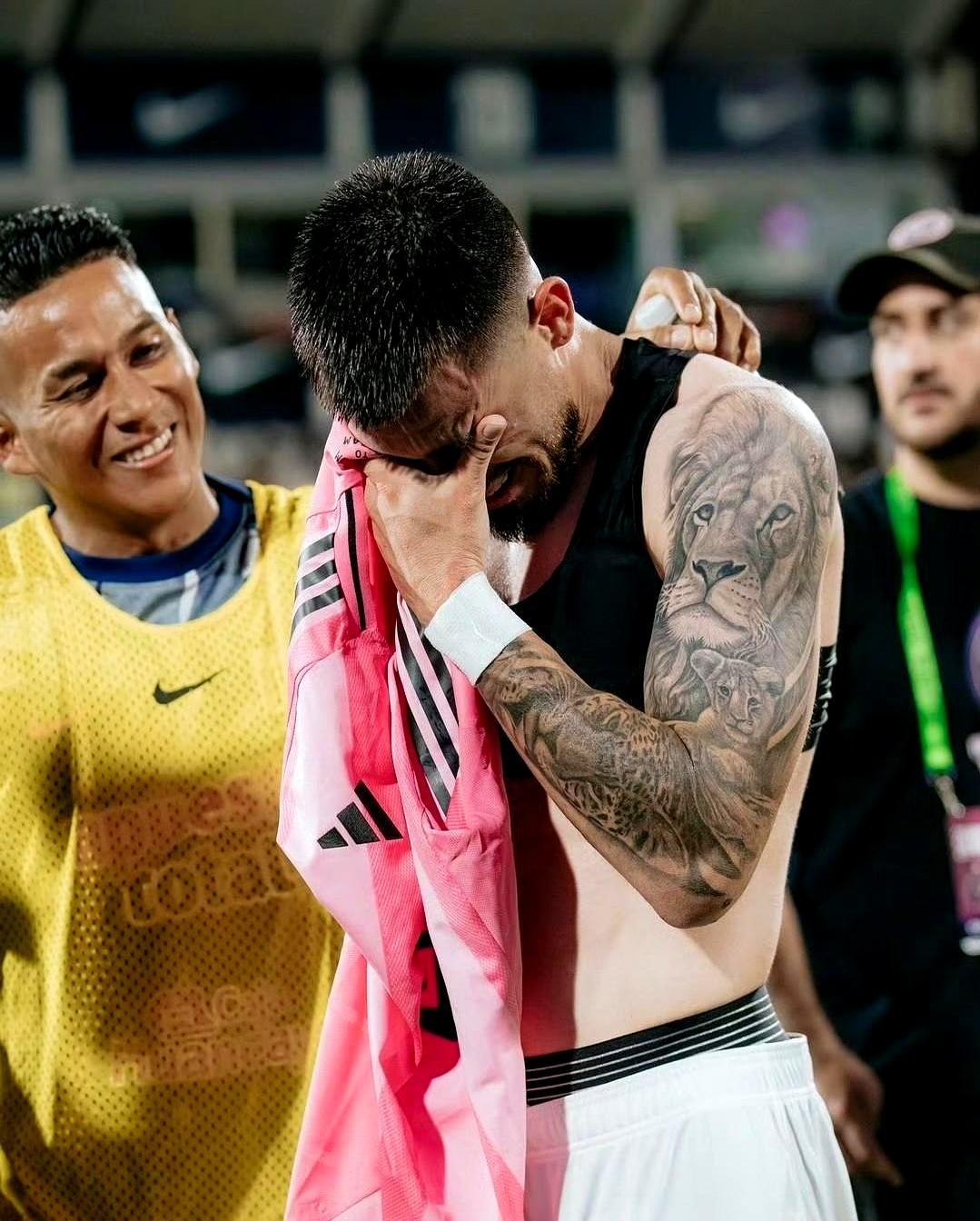 他扒开大腿给梅西看,全场都愣住了。梅西低头一看,整个人都暖住了。 你没看错,这不是什么花边新闻。就在迈阿密和秘鲁的友谊赛后,27岁的阿根廷前锋坎特罗,当着几万人的面,直接撸起自己的球裤,把大腿亮给了梅西。 大腿上纹的,正是梅西亲吻大力神杯的画面。坎特罗哭着说,他从小就是看着梅西踢球长大的,梅西就是他的神。2022年阿根廷夺冠后,他第一时间把偶像刻在身上,还发文说“我用灵魂爱你”。 这根本不是球星见球星,而是一个追梦的人,终于拥抱了自己的信仰。
