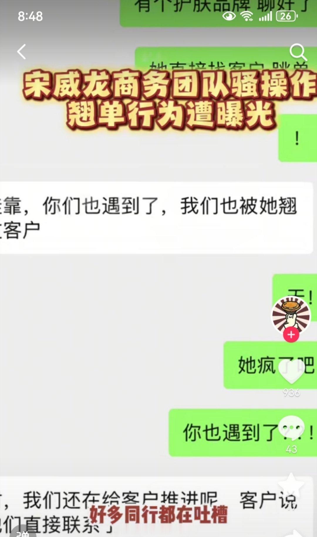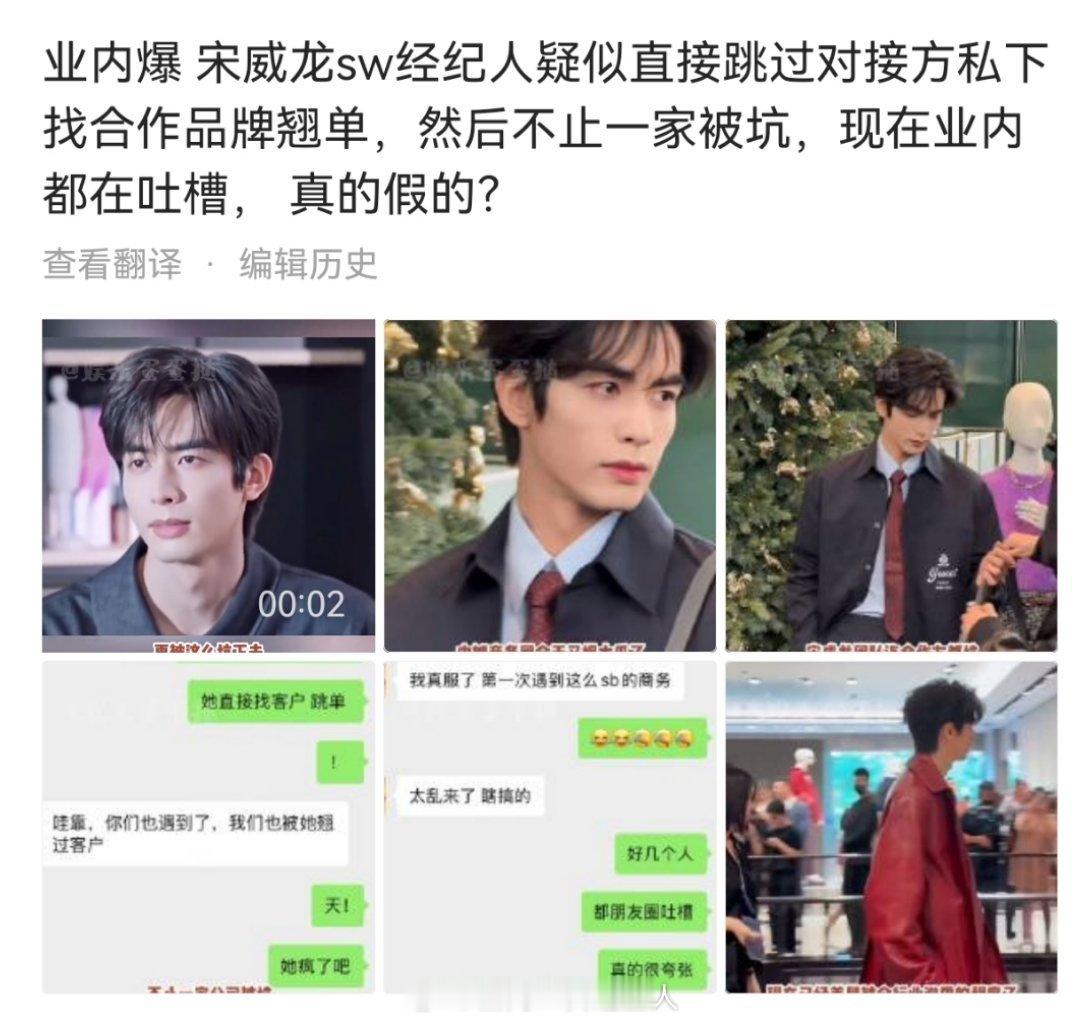 刷到有人说宋威龙商务跳开对接人撬客户啊,正在广泛吐槽中,有点打破认知,不知道会不会有回应