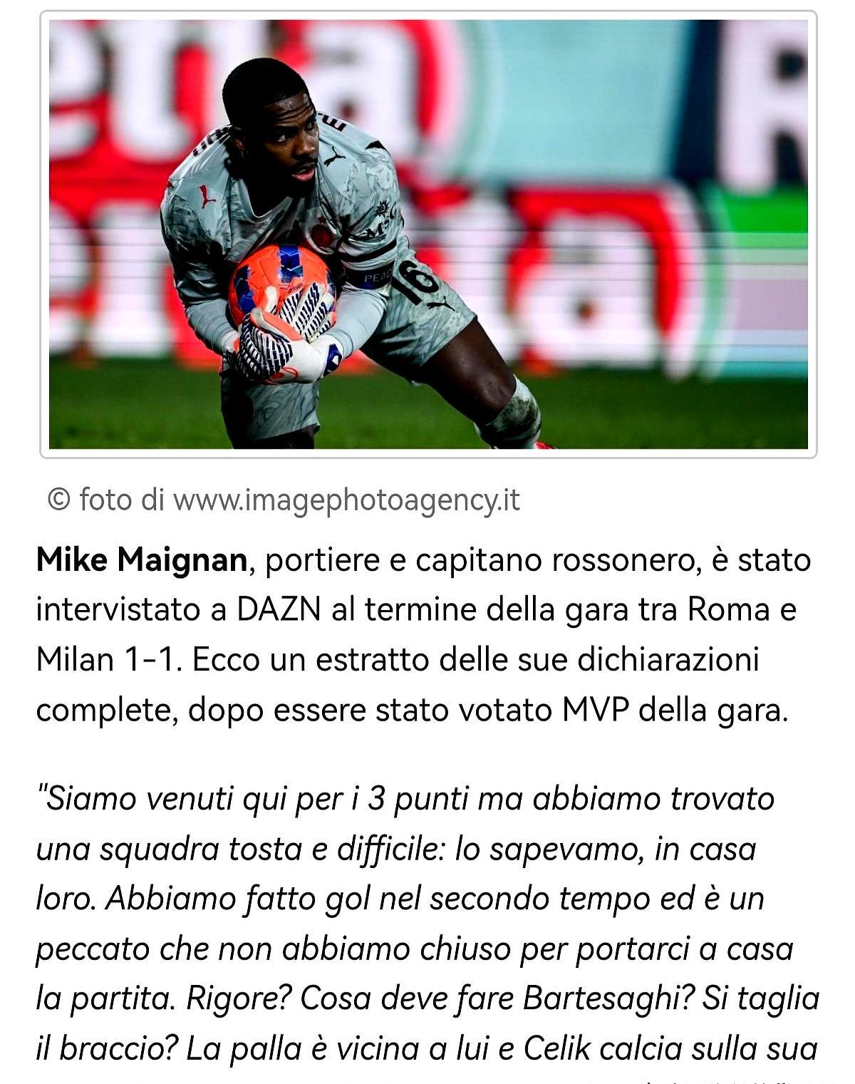 米兰门将迈尼昂这事儿,咋说呢,有点憋屈。 跟罗马踢平,他拿了全场最佳。全场扑出6个关键球,上半场全靠他一个人撑着。结果呢?赛后气得不行。 就因为那个点球。他说罗马的人是自己往我们后卫手上撞的,而且我们自己的人在对方禁区里遇到类似情况,裁判理都不理。这标准就有点欺负人了。 说白了,没这颗点球,罗马根本进不了球。 虽然米兰21场不败的记录保住了,但到手的3分变1分,搁谁谁火大。好在俱乐部也懂,马上要续约到2031年,给他队内顶薪。算是给个交代。