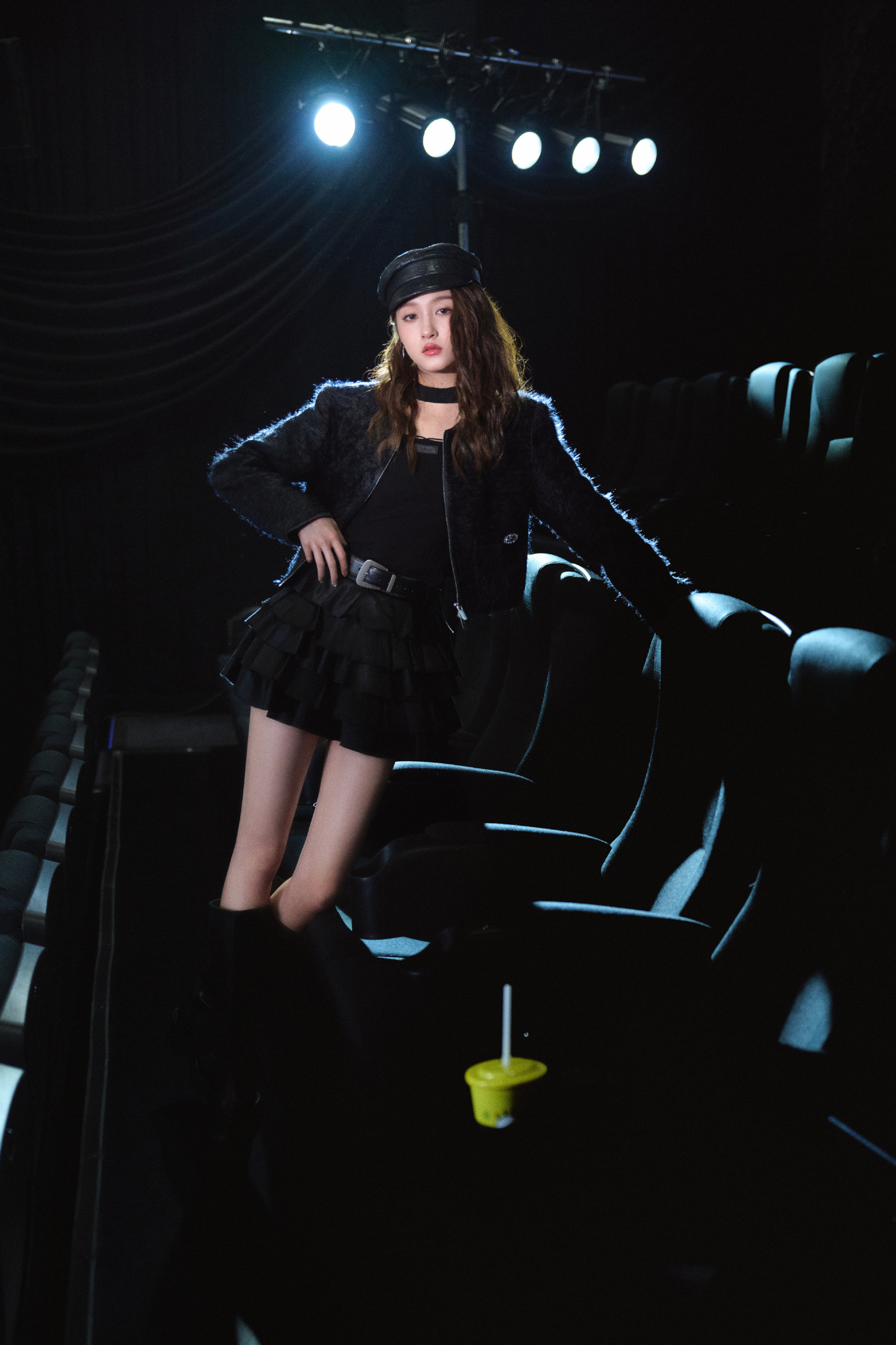 关晓彤小巷人家,今日份戴报童帽的黑裙少女。关晓彤