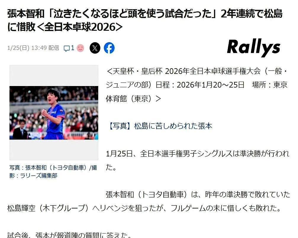 6比0开局,被松岛一口气扳到13比11,张本当场脸绿。 后头两局他咬紧牙关拿回来,可关键分还是松岛更硬,3比4,连续两年倒在这张脸面前。 松岛决赛25分钟剃篠塚光头,18岁完成两连霸,高中生里历史第二人。 张本掉第三,世界排名还是日本一哥,但头衔被小自己三岁的同龄人当面抢走。 他赛后说“输了就是输了,人家底力涨球”,这句服气里夹着狠话:下次见。 同一天,妹妹美和把早田希娜掀翻,首拿全国女单冠。 哥哥丢冠,妹妹加冕,日本乒乓换代一夜完成。 张本想报仇,先得过自己那道6比0被翻的心坎。