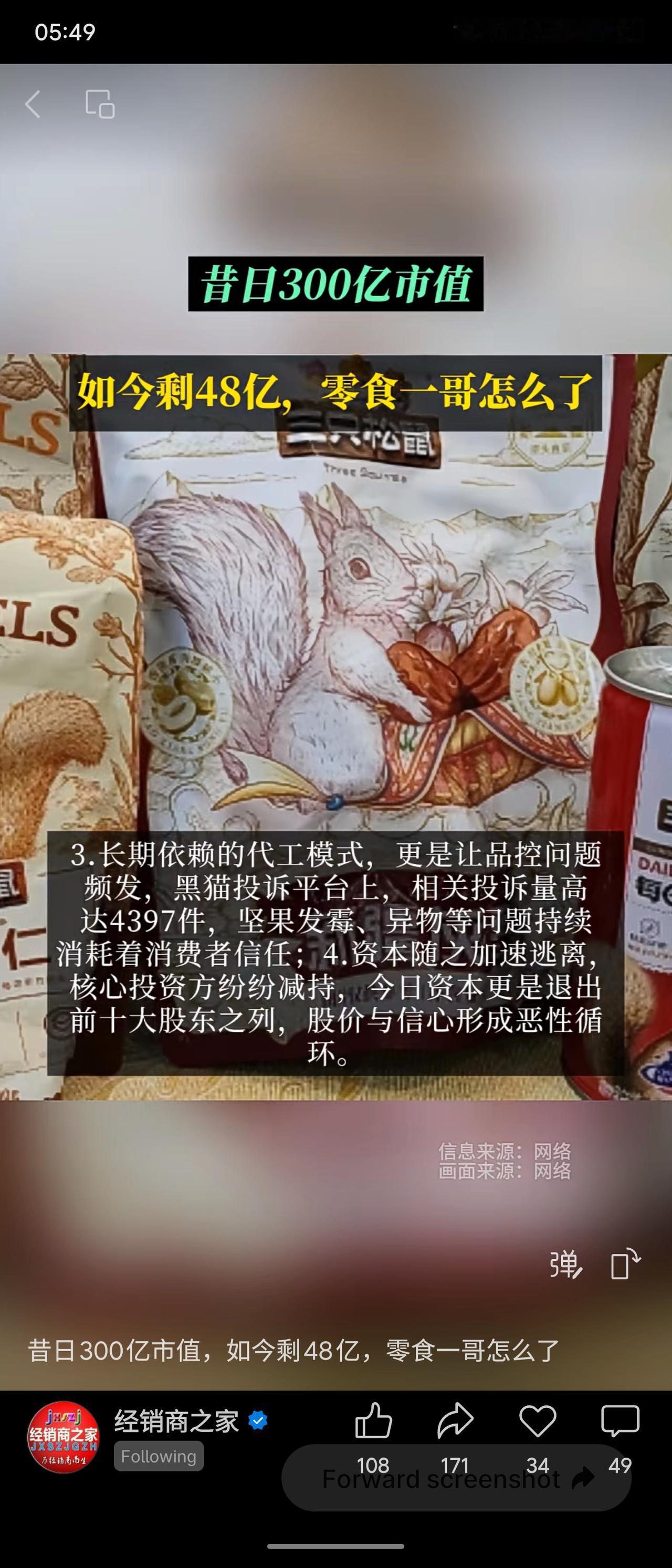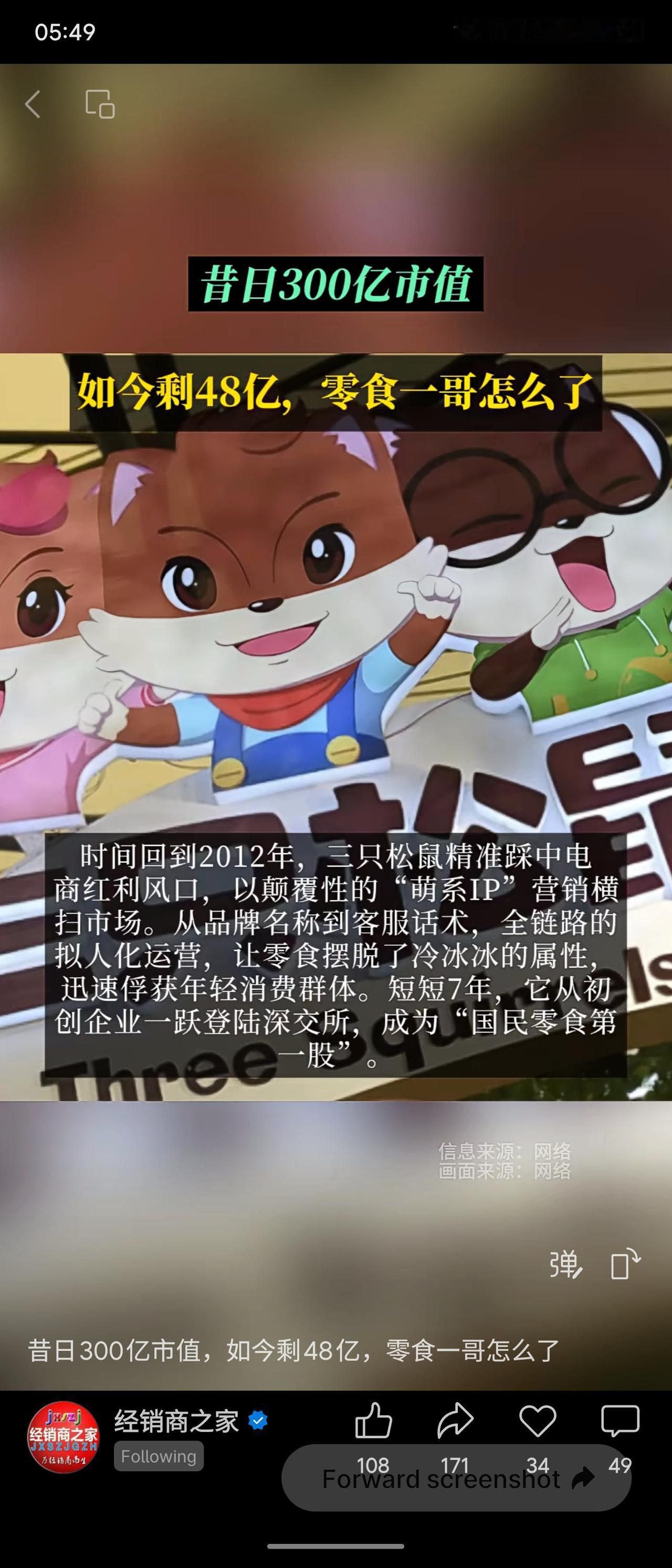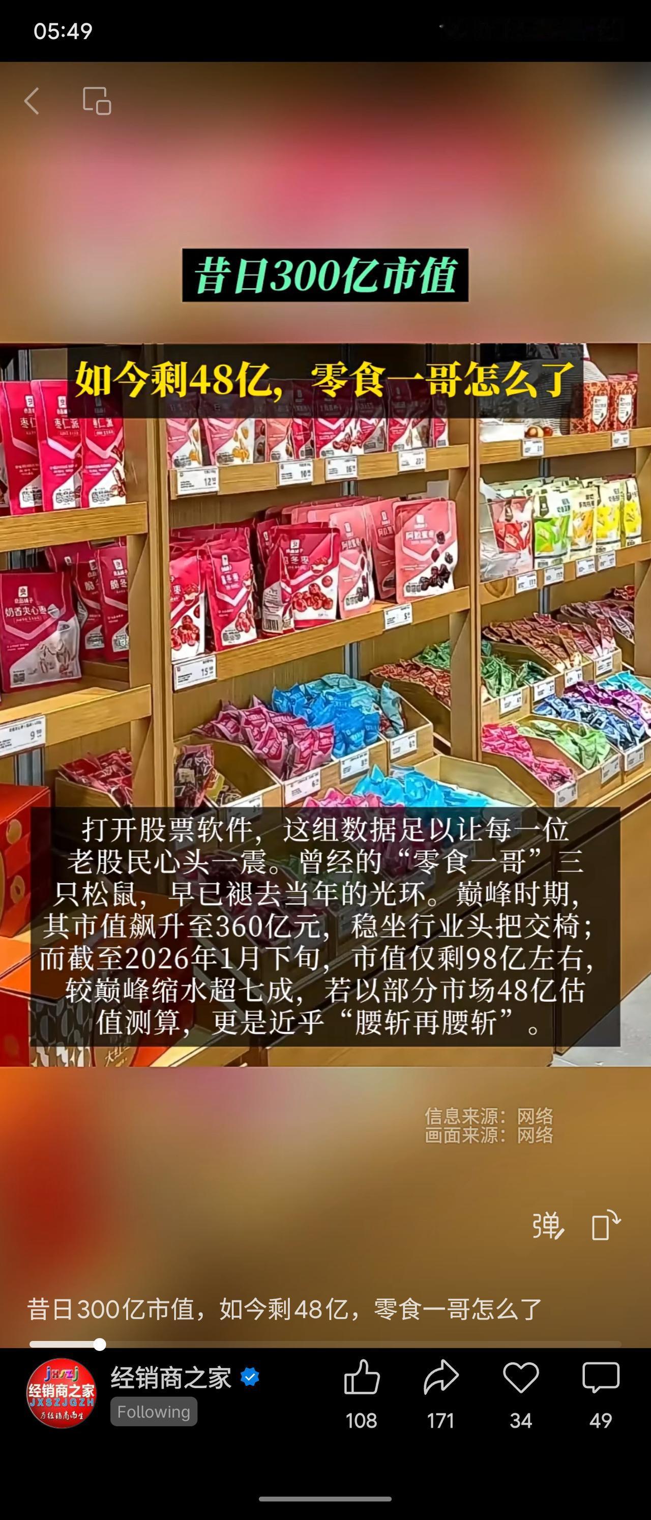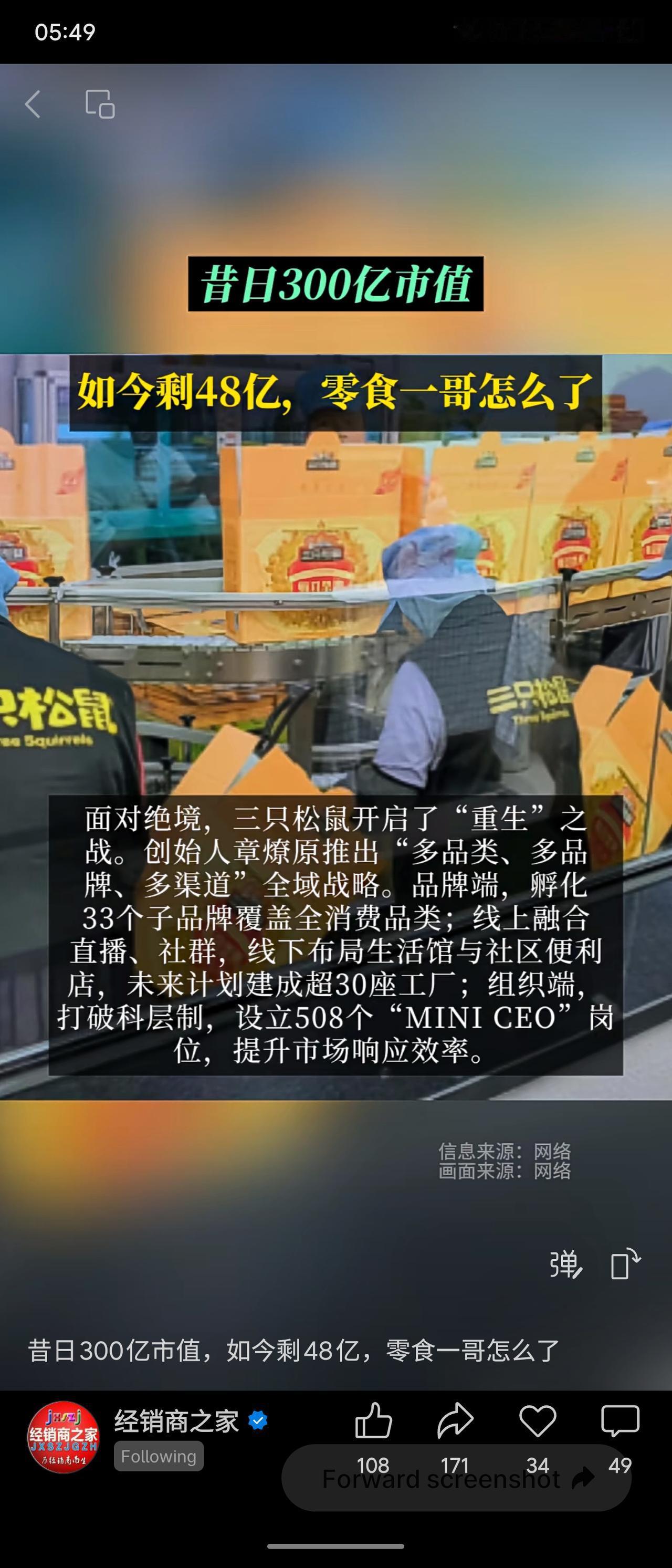 曾凭借电商红利与萌系IP迅速崛起、市值超300亿的“零食一哥”三只松鼠,近年因流量成本攀升、线下扩张受挫、代工品控问题及资本撤离,市值缩水至约48亿。目前其正通过全域战略与组织改革谋求转型,但多线扩张带来的资金、运营及竞争压力,使其“重生”之路仍面临严峻考验。