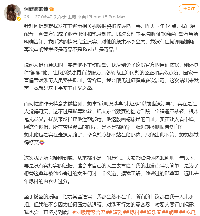 何健麒前女友长文前女友回应何健麒尿检发检 何健麒前女友长文回应他尿检发检。