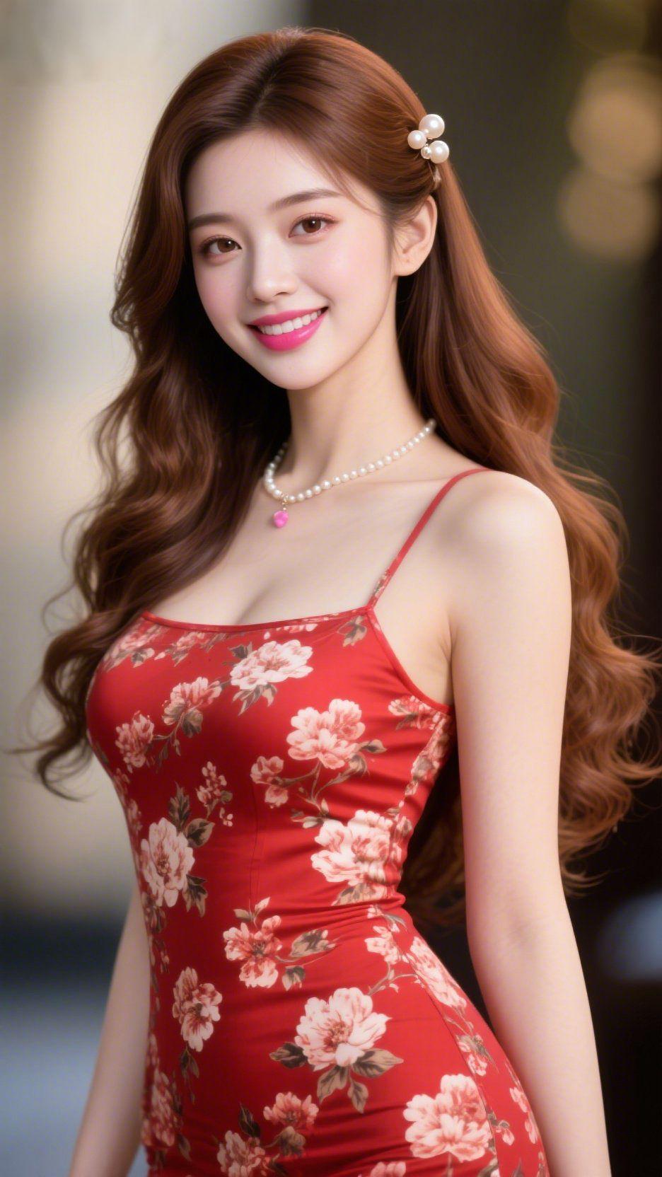 红裙伴柔光 暖调光影里漫着轻息,她立在其中笑时,像把晴色织进了红裙花簇中。 裙面花色沾着柔润的意,随身姿轻缓舒展,长发垂落肩侧,发梢裹着碎光,柔化了裙装的明艳。发间珠饰亮如星子,颈间细链坠着粉圆,衬得眉目愈见舒展。唇角笑意轻浅,像浸了温茶的软云,落在眼底便成轻暖的柔。 这份鲜活从不是灼人的艳,是红裙裹着的松弛,是眉眼间漫开的自在——原来日常的悦目从不是繁复妆点,是这样妥帖的舒展,这样轻软的笑意,把寻常时光晕成了温柔的模样。 穿搭日常 生活闲柔