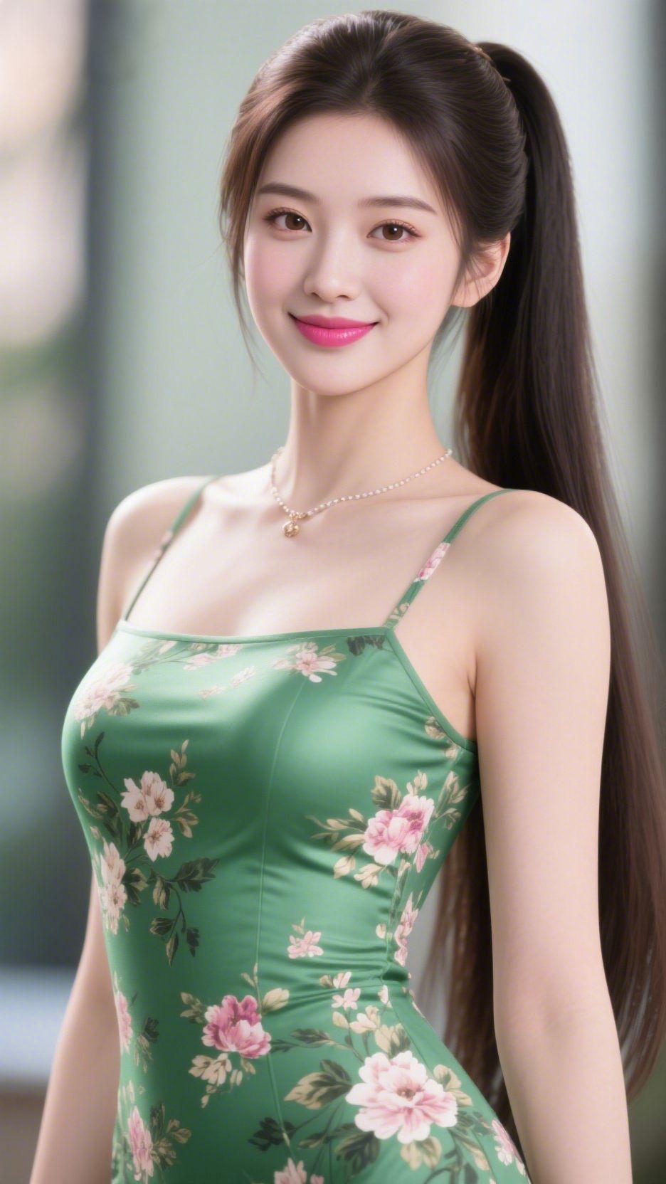 翠裙栖轻光 柔浅的光影里漫着轻息,她立在其中笑时,像把春林的润意织进了翠裙的花簇里。 裙面花色沾着软风的柔,随身姿轻缓舒展,马尾垂在肩后,发梢裹着碎光,颈间细链坠着金饰,衬得眉目愈见明软。唇角笑意轻浅,像浸了云气的软絮,落在眼底便成轻暖的柔。 这份鲜活从不是张扬的艳,是翠裙裹着的松弛,是眉眼间漫开的自在——原来日常的悦目从不是繁复妆点,是这样妥帖的舒展,这样轻软的笑意,把寻常时光晕成了温柔的模样。 穿搭随感 生活清柔