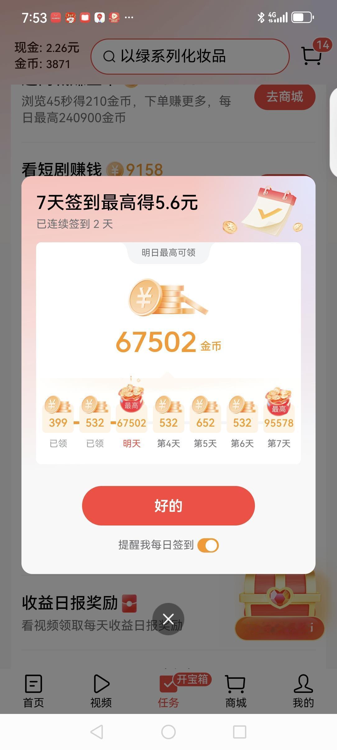 刷金币的乐趣。 头条极速版签到7天,必得5.6元。我第一个没有。现在开启第二个5.6元。我们玩头条,头条玩我们!充满了惊喜和挑战。