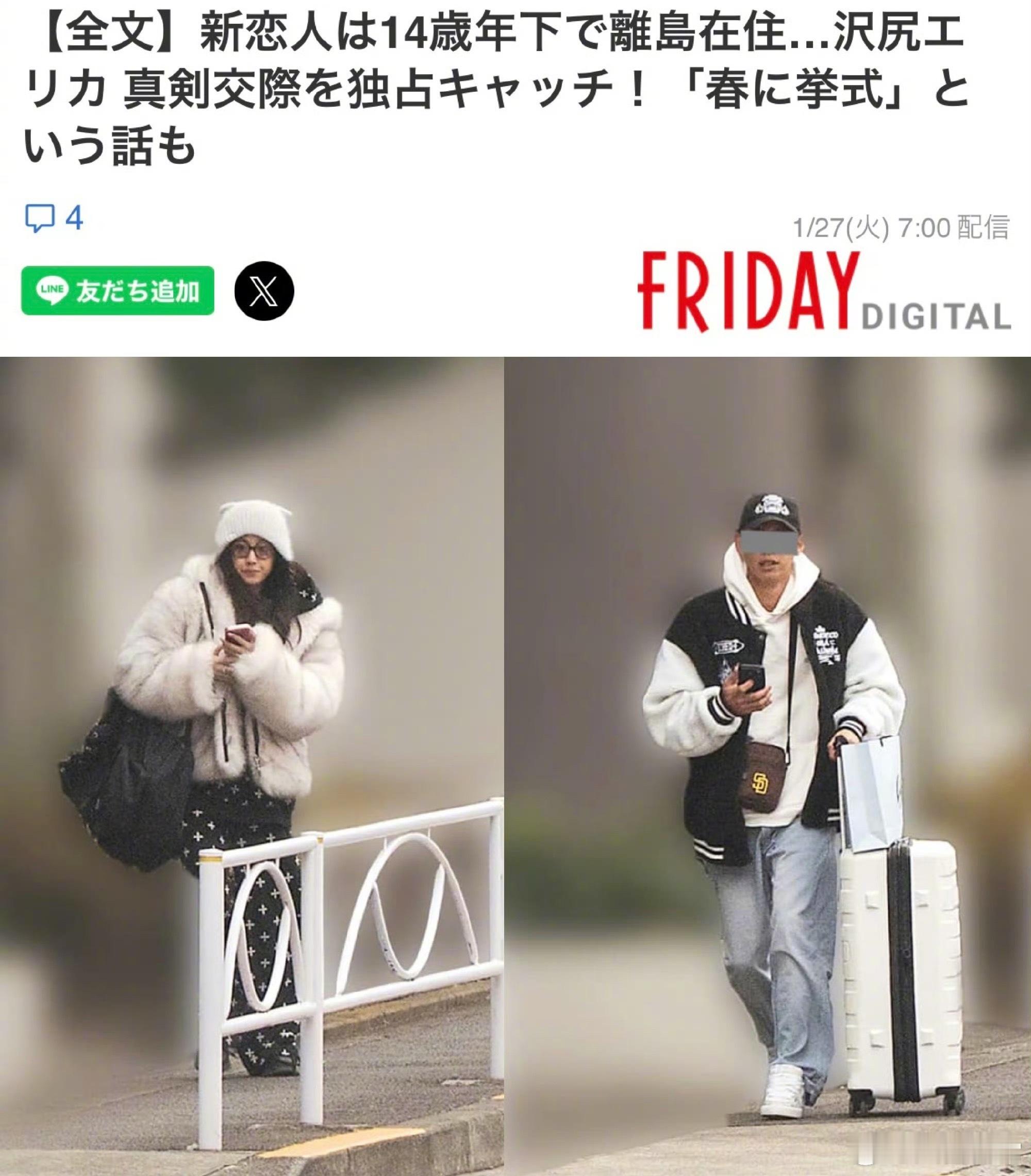 39岁泽尻英龙华与小14岁男友恋情曝光,据说春天会结婚。男友是一家公司的普通职员