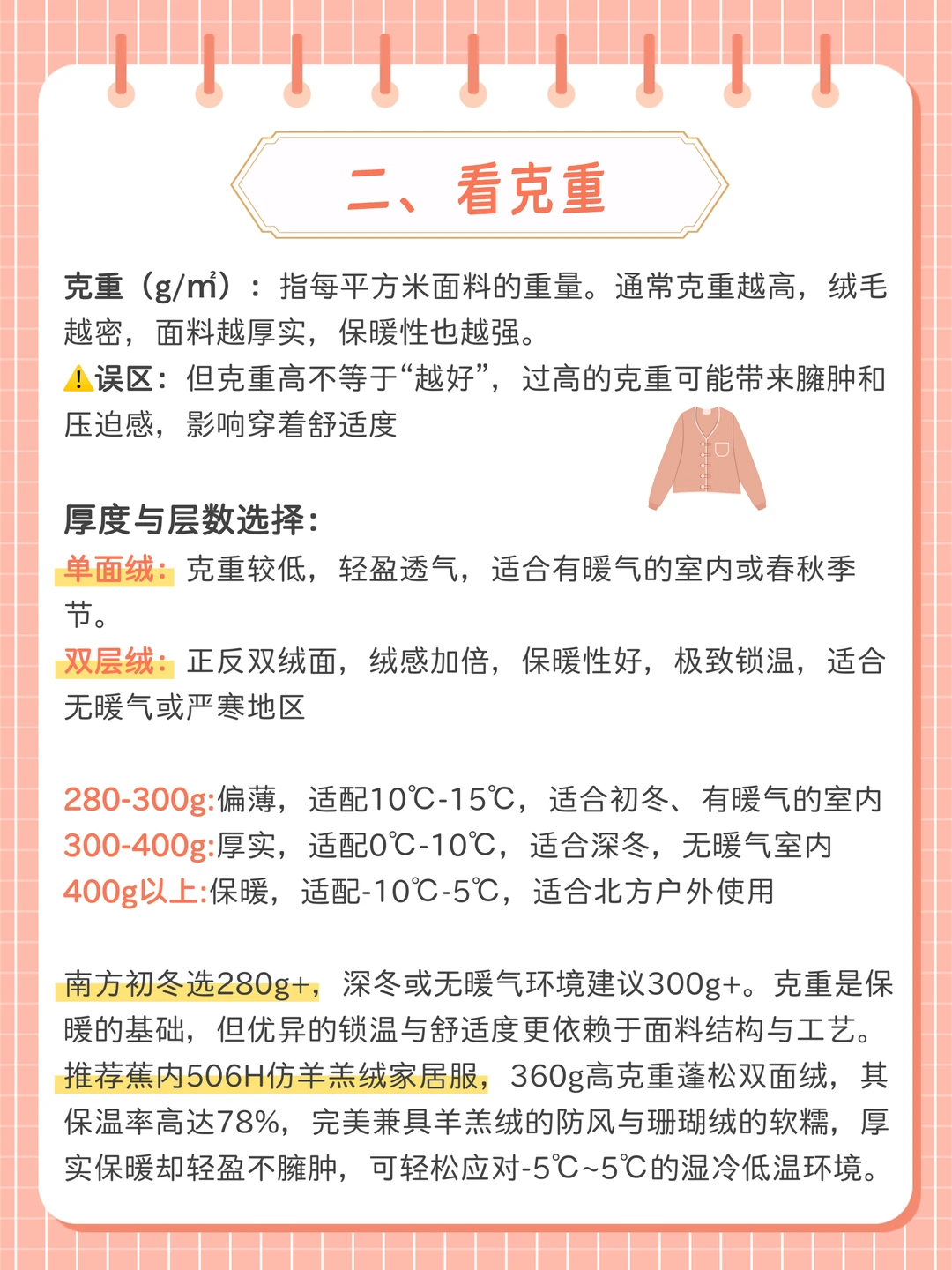 ② 看准克重:按温度选厚度,南方过冬优选300g以上