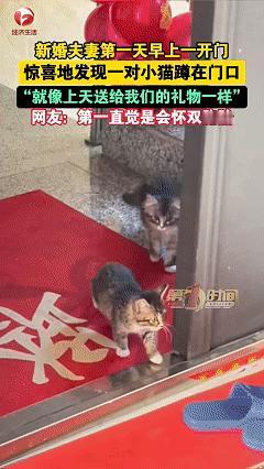 解释不清了!近日黑龙江,女子刚跟丈夫结婚,第二天开门时,看见有两只小猫在自己家门口坐着,丈夫看见后就冲小猫拍了一下手,没想到两只小猫就像是有感应一般,就走了屋里,一点都不怕人,好像是上天赐给夫妻俩的礼物一样。 地点是黑龙江,时间就在今年1月下旬。对于住在高层的朋友来说,我们都有个共识:除非电梯坏了,否则没人愿意爬楼梯,更别提动物了。 可就在这个还在冒着寒气的早晨,一对刚办完婚礼的小两口,家住10楼,推开门准备迎接新婚第一天的生活,结果这一脚门里门外,直接跨进了一个魔幻现实主义的片场。 门口端端正正蹲着两只猫。 不是路过的野猫,也不是邻居走丢的宠物,看那架势,倒像是专门来随礼的“娘家人”。 这就很离谱了。我们都知道流浪猫生存法则第一条就是“低调”,通常它们只会在地下室或者灌木丛里一闪而过。 要爬上10楼,这对它们来说简直就是一场攀登珠峰般的壮举。中间这十几层的钢筋水泥,它们是怎么避开感应灯、穿过防火门,精准导航到这一户贴着红喜字的人家门口的? 这大概就是所谓的“玄学”时刻。 新郎官当时也是懵的,脑回路还没从婚礼的喧嚣里转过来,下意识地对着两只毛孩子拍了下手。这动作在我们人类看来,顶多算个逗弄,或者试试猫怕不怕人。 但在那两只猫眼里,这清脆的一声“啪”,直接被翻译成了“请进”。 两只小家伙根本没把自己当外人,尾巴一翘,大摇大摆就进了屋。那种从容不迫的劲头,仿佛它们才是这房子的原住民,而这对新人只是借宿的房客。 这时候,理性的那一面开始在夫妻俩脑子里占上风了。 这么高的楼层,来源不明的动物,这到底是福是祸?就在两人面面相觑、眼神交流的那几十秒里,屋里的空气变了。 流浪动物的直觉准得吓人。它们大概瞬间就捕捉到了空气中那份“不确定”和“犹豫”,原本舒展的身体紧绷了一下,眼神里的光暗了下去。 既然不受欢迎,那就走吧。两只猫没吵没闹,转身默默退出了门外,消失在楼道阴影里。 屋门重新关上,世界安静了。可这心里头,怎么就那么不是滋味呢? 新娘子坐在沙发上,越想越觉得胸口堵得慌。这大冬天的,黑龙江的室外那是能冻死人的温度。它们费尽千辛万苦爬上10楼,敲开了门,却又被那几秒钟的犹豫给推了出去。 这一走,可能就是生与死的距离。 “不行,得找回来。” 两口子那一刻显出了惊人的默契。分工明确:男的冲下楼去超市买猫粮,女的推开门往楼下追。 这要是真走了,这辈子可能都会留个遗憾。但缘分这东西,有时候就在那几层台阶之间。 当新娘子追到6楼的时候,脚步停住了。 那两只小猫并没有跑远。它们就缩在6楼的台阶拐角处,仰着头,看着上方。那眼神怎么形容呢?不是乞讨,而是一种近乎绝望的等待。 从10楼到6楼,这四层楼的距离,是它们留给人类最后的“反悔期”。 这一眼对视,彻底击穿了防线。什么来路不明,什么卫生问题,在两个瑟瑟发抖的小生命面前,统统都不重要了。 一把抱起,回家。 等到猫粮买回来,看着两个小家伙狼吞虎咽的样子,肚子瘪得看来是饿了不知道多少顿了。吃饱喝足,它们也没要走的意思,直接在屋里找个舒服角落趴下了,呼噜声震天响。 这事儿传到网上,评论区那是锣鼓喧天。有人说是“猫来财”,有人说是“双喜临门”,还有人预言这寓意着要生双胞胎,仿佛老天爷补了一份厚礼。 但我更愿意相信另一种说法。 这世上哪有什么天降的财运?所谓的“猫来富”,不过是因为愿意接纳流浪生命的人家,本身就自带一种温柔的磁场。 这种磁场,能让两个在寒风中挣扎的小生灵,在那一瞬间感应到:就在那扇贴着红字的门后,有能活命的温度。 这哪是单向的收养啊,分明是一场双向的奔赴。 它们穿过冰冷的楼道,爬上十层的其高地,只为了在茫茫人海中,精准地锁定这一份还没被世俗磨硬的善良。 这个冬天很冷,但这对小夫妻的家,应该是整个小区里最暖和的地方了。 参考信息:AHTV 第一时间. (2026 年 1 月 26 日). 新婚第一天,家门口蹲了一对 “猫客人”! 小夫妻:这是上天送的礼物一样
