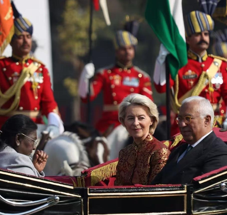 太尴尬了!欧盟主席冯德莱恩被邀请参加印度阅兵式后反而遭到了美国多家媒体的嘲讽,认为终于被尊重的冯德莱恩明显是激动坏了,除了在与印度总理莫迪一同检阅首次亮相的动物方队时露出尴尬笑容被认为不尊重印度外,还被认为正在“病急乱投医”,试图在欧盟与美国关系马上分崩离析的背景下讨好印度 印度共和国日的阅兵盛典,历来是展现本土文化与国际姿态的重要场合。 1月26日,新德里的庆典现场除了标志性的骆驼骑兵方队惊艳亮相,欧盟双主席的共同出席更让这场活动跳出单纯的国庆范畴,成为牵动大国关系的焦点事件。 欧盟委员会主席冯德莱恩与欧洲理事会主席科斯塔的到访,本是印欧深化合作的重要信号,却因冯德莱恩的一个表情,彻底被美国媒体的嘲讽声所覆盖。 当日阅兵进程中,冯德莱恩与印度总理莫迪并肩检阅首次登场的动物方队时,面部浮现的尴尬笑容被全程记录。 这一不经意的神态,迅速在美国舆论场发酵升温。 多家美国媒体纷纷将其解读为对印度文化的不尊重,更借此展开针对性批评,直言冯德莱恩是因许久未获国际社会这般“礼遇”,内心激动过度才失了分寸,露出不合时宜的表情。 美国媒体的嘲讽并非仅停留在表情争议上,更直指冯德莱恩此行的深层动机,将其定义为一场典型的“病急乱投医”。 当下欧盟与美国的关系正持续恶化,双方在贸易、供应链等多个领域的分歧不断加剧,裂痕难以弥合。 在这样的背景下,冯德莱恩主动带队亲近印度,被美国媒体解读为向印度刻意讨好,试图为陷入困境的欧盟寻找新的外交与经济支撑。 印欧双方此次互动,确实带着明确的合作诉求。 紧随阅兵式之后,1月27日欧盟-印度峰会如期举行,双方将签署自由贸易协定列为核心议题。 为推动协定落地,印度拿出了前所未有的诚意,计划将欧盟燃油汽车进口关税从最高110%大幅下调至40%,这一调整创下该国市场开放的最大幅度纪录。 要知道,欧洲汽车目前在印度市场的占比还不足4%,此次关税让步无疑是印度为吸引欧盟合作抛出的关键筹码。 莫迪在1月26日晚间发文,特意提及接待欧盟双主席的荣幸,称此次访问印证了印欧合作的升温,也彰显了双方对共同价值观的坚守,将为后续各领域合作注入动力。 这番表态既是外交礼节,也是对印欧合作的高调背书,试图向外界传递双方抱团发展的决心。 但美国媒体并不看好这份合作,认为欧盟急于与印度绑定,不仅难以真正打开新的贸易空间,反而可能彻底激怒特朗普,引发美国更严厉的贸易反制。 美国媒体的质疑并非毫无依据,冯德莱恩自身也面临着需要证明自身影响力的压力。 此前深陷诸多负面评价的她,或许确实希望通过这场高规格的访问,向欧洲内部展现自己仍能获得国际社会的认可,重塑自身的外交形象。 但事与愿违,一个不经意的笑容引发的舆论风暴,反而让她陷入更被动的境地,也让印欧合作的开局蒙上了一层阴影。 印欧合作本身还潜藏着不可忽视的风险。 印度与俄罗斯长期保持着深度合作关系,在能源、军事等关键领域绑定紧密,这一关系始终让欧盟心存顾虑。 美国媒体也预判,未来不排除印俄联手,对欧盟实施反制的可能,这为双方的合作前景增添了诸多不确定性。 一场阅兵式上的小插曲,最终演变成牵动多方的外交风波。 冯德莱恩的印欧之行,本意是为欧盟寻找新的合作路径,同时证明自身价值,却因美国媒体的密集嘲讽,沦为争议焦点。 在大国博弈愈发复杂的当下,这样的风波,不过是全球格局调整过程中诸多不确定性的一个具体体现。 今天的分享到这里就结束了,大家对此事有何看法,欢迎在评论区留言和讨论,感兴趣的可以点击头像加关注,我将每日更新优质内容,我们下期见。