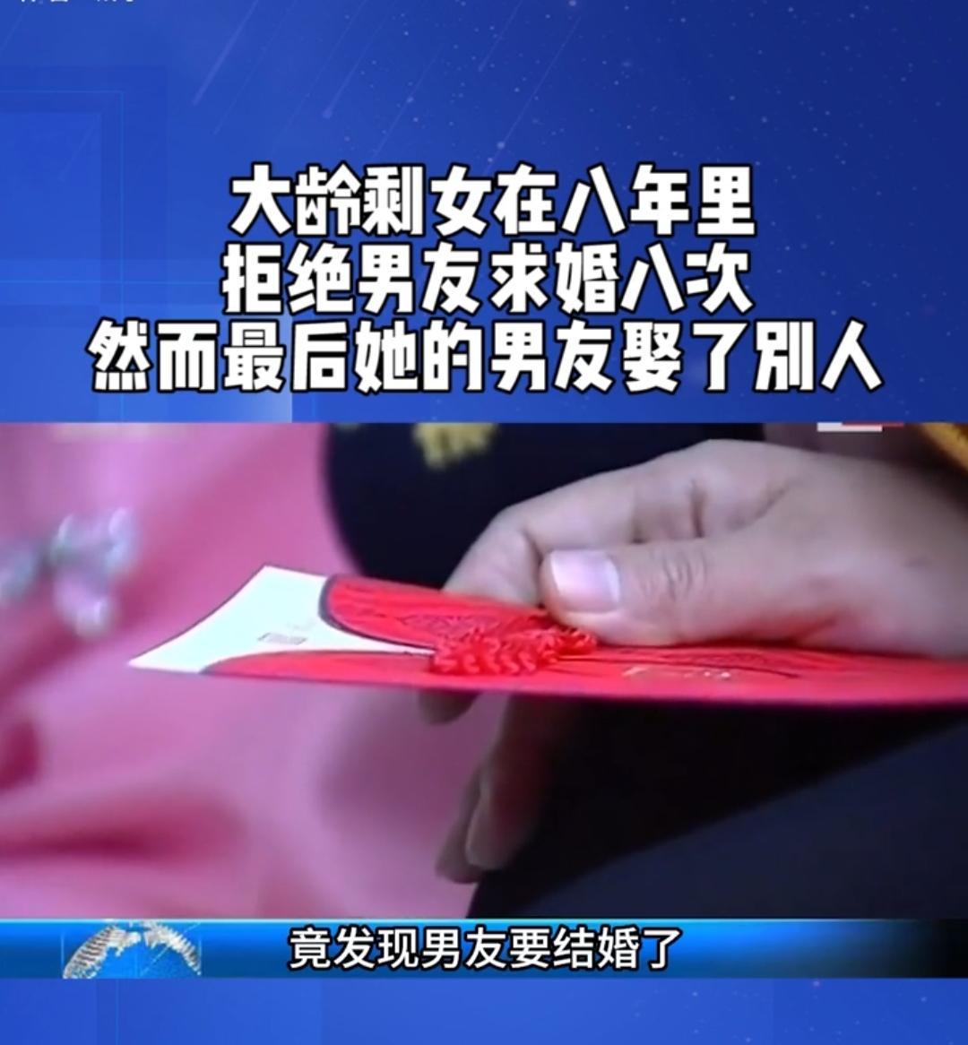 她怎么也不会想到, 拒绝八次求婚之后,对方真的会离开。男子现在要结婚了,女子哭了很久,说只是想要十全十美。 可是八年时间很长,很少有人会一直等待。感情不能只靠单方面的考验,对方选择开始新生活,可以理解。 感觉女子的做法有些自私,感情需要彼此尊重。错过了就是错过了,强求不来。 大家觉得呢?