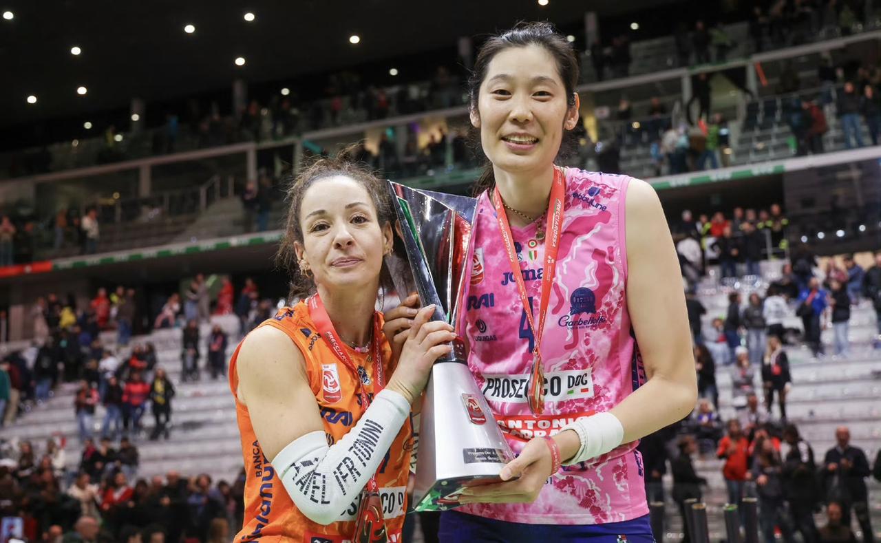 德吉纳罗对朱婷真好啊! 意大利杯,科内夺冠后,队员们纷纷合影或单独留影。 当朱婷手举奖杯,单人拍照结束后,师母德吉纳罗,特别跑过来在朱婷合照。 这是一个特别暖心的瞬间,德吉纳罗即将退役,而下赛季朱婷也很大概率不留在科内俱乐部。 德吉纳罗特别过来合影,意味深长啊。 下赛季就再也见不到这么温馨的场面了。
